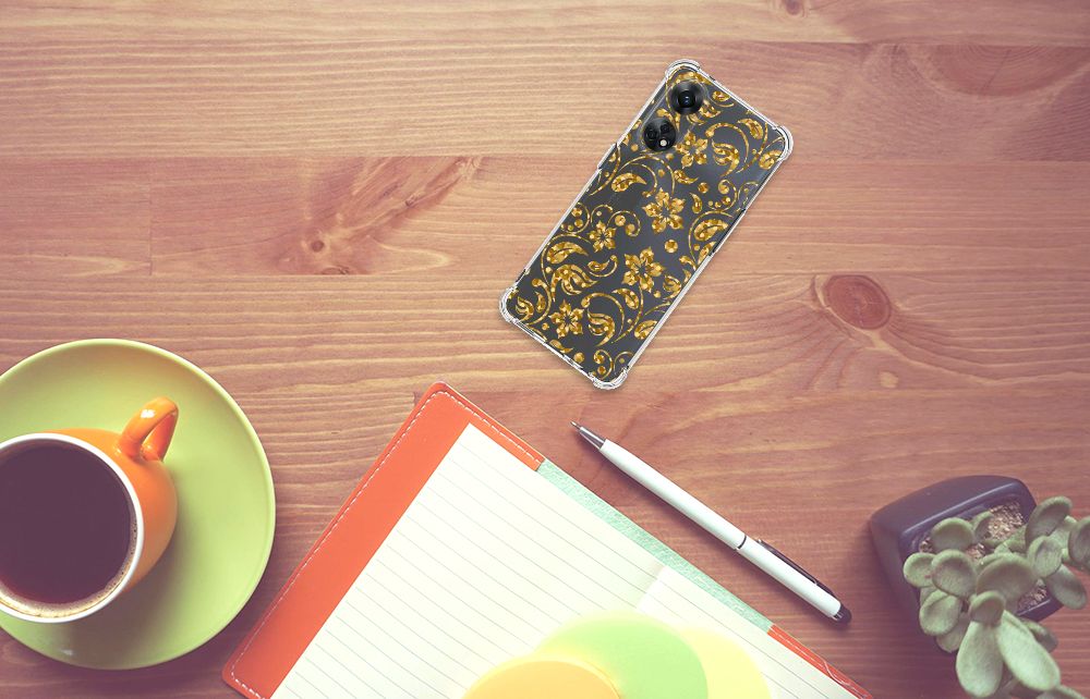 Ben je op zoek naar een uniek telefoonhoesje voor je OPPO Reno8 T 4G? Dan ben je bij B2C Telecom aan het juiste adres! Speciaal voor jou hebben we dit prachtige Gouden Bloemen design in onze collectie hoesjes opgenomen. Het design wordt bedrukt op een Case en is gemaakt van flexibel rubber. Het hoesje is perfect voor de actieve smartphonegebruiker door de opstaande randen/hoeken. Denk aan mensen die veel sporten, reizen of wandelen en net iets meer zekerheid willen als het op hun geliefde telefoon aankomt. Het design wordt alleen aan de bovenkant van het hoesje bedrukt en de randen blijven transparant. Aan de zijkanten zijn uitsparingen gemaakt waardoor je met gemak alle knoppen en poorten kunt bedienen. Wij adviseren om dit hoesje in combinatie met een screenprotector te gebruiken voor een langere levensduur van je telefoon. Wil je dit hoesje nog iets extra's geven? Voeg dan gratis je naam of een quote toe! Is dit design hoesje toch niet helemaal wat je zocht? Ontwerp dan zelf een hoesje in ons ontwerpprogramma.