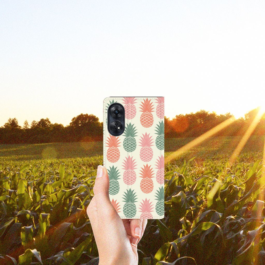 Ananas is een woord uit het Tupi, de taal van de Tupi-indianen, en betekent uitmuntende vrucht. Dit fruit van zeer hoge kwaliteit staat op onze superieure boekhoesjes, stand cases, hard cases en TPU cases. Jij blijft er gezond uitzien als je zo nu en dan een hap neemt van een Ananas , jouw smartphone blijft tip top in orde als je er een leuk telefoonhoesje omheen doet. Een ananas heeft stevig, veerkrachtig vruchtvlees. Een beetje te vergelijken met het TPU in onze hoesjes. TPU is elastisch materiaal, dat zeer buigzaam is. Vandaar dat het zeer schokbestendig is. Het ananas design staat op een stand case. Deze OPPO Reno8 T 4G Flip Style Cover beschermt jouw telefoon aan alle kanten en beschikt over een 1 opbergvakje en een speciale standaard. Het hoesje wordt afgesloten met een magneet aan de binnenzijde. De houder aan de binnenzijde is van TPU.