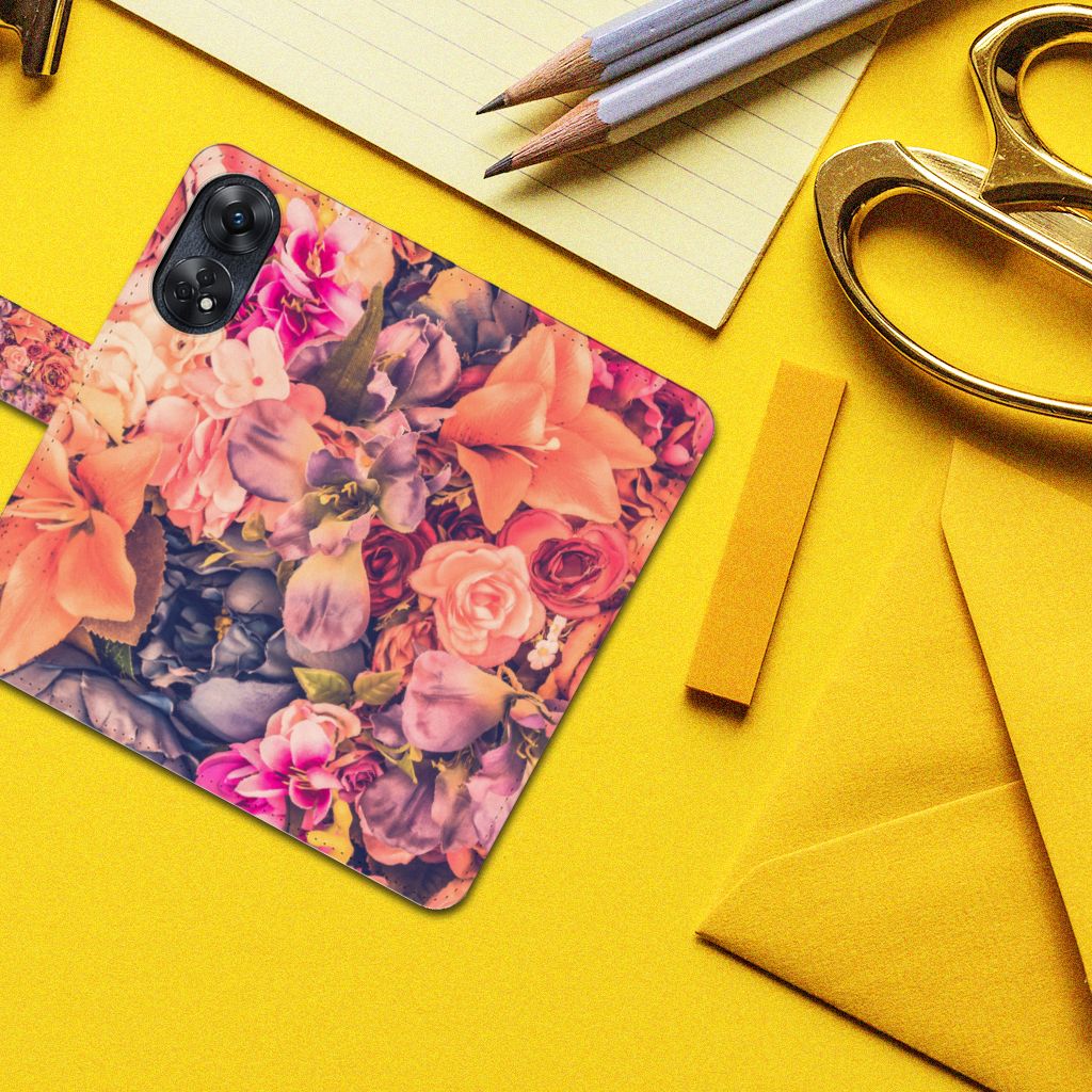 OPPO Reno8 T 4G Hoesje met ruimte voor 3 pasjes Bosje Bloemen