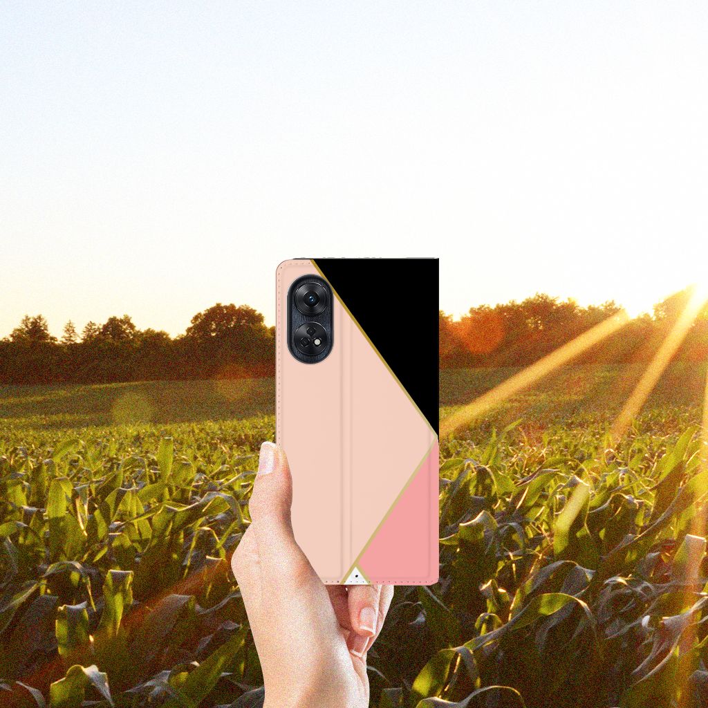 OPPO Reno8 T 4G Print Stand Case Zwart Roze Vormen