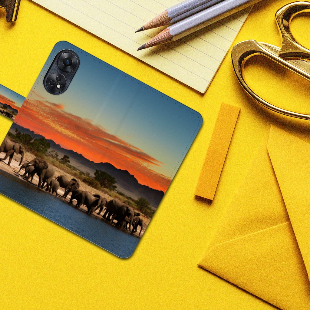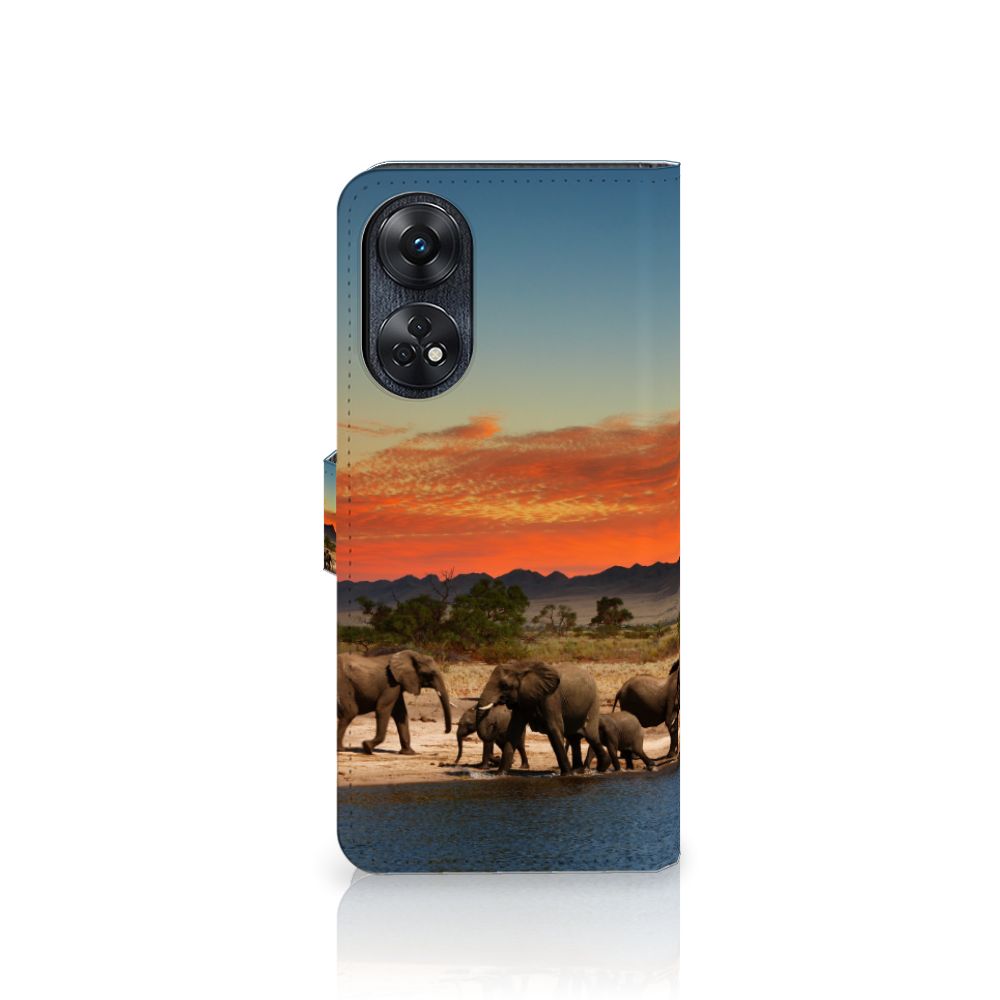 OPPO Reno8 T 4G Telefoonhoesje met ruimte voor 3 pasjes Olifanten
