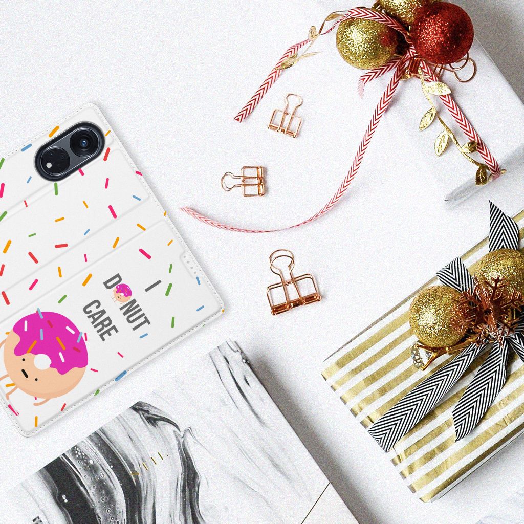 De cartoon met Donut op dit design hoesje geeft jouw smartphone een grappige en vrolijke uitstraling. De OPPO Reno8 T 5G Flip Style Cover zorgt ervoor dat je je schouders op zult halen als je telefoon een keer op de grond valt. Omdat er geen schade zal optreden kun jij je weg weer heel makkelijk vervolgen. De grappige Donut Care stand case is een zeer populair product. Allereerst is het nergens anders te krijgen. Het design is namelijk van de hand van onze eigen ontwerper. Daarnaast zal de case jouw smartphone aan alle zijden beschermen. Ook heeft het Donut Care hoesje een vakje aan de binnenzijde en een speciale standaard. Ook kun je je eigen unieke hoesje ontwerpen, met eigen cartoons, foto’s en teksten. De houder aan de binnenzijde van de Donut Care case is van TPU, de buitenzijde van PU leer.