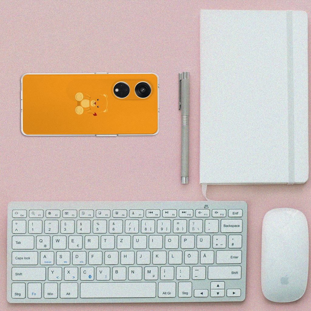 Dit vrolijke teddybeertje zou je het liefst willen knuffelen. Dat wordt lastig, op een telefoonhoesje. Maar dat betekent niet dat dit design niet evengoed onwijs schattig is. Het ontwerp is vanwege de oranje achtergrondkleur evengoed subtiel. Dit Baby Beer-design is perfect voor de knuffelberen onder ons. Dit design staat op een Telefoonhoesje met Naam voor je OPPO Reno8 T 5G. TPU is flexibel en onbreekbaar. Zo is je telefoon aan de achterkant en de randen heel goed beschermd. De case is aan de bovenkant bedrukt, de randen blijven transparant. Het TPU-hoesje is perfect te combineren met een screenprotector, zo zijn je telefoon en je beeldscherm perfect beschermd.