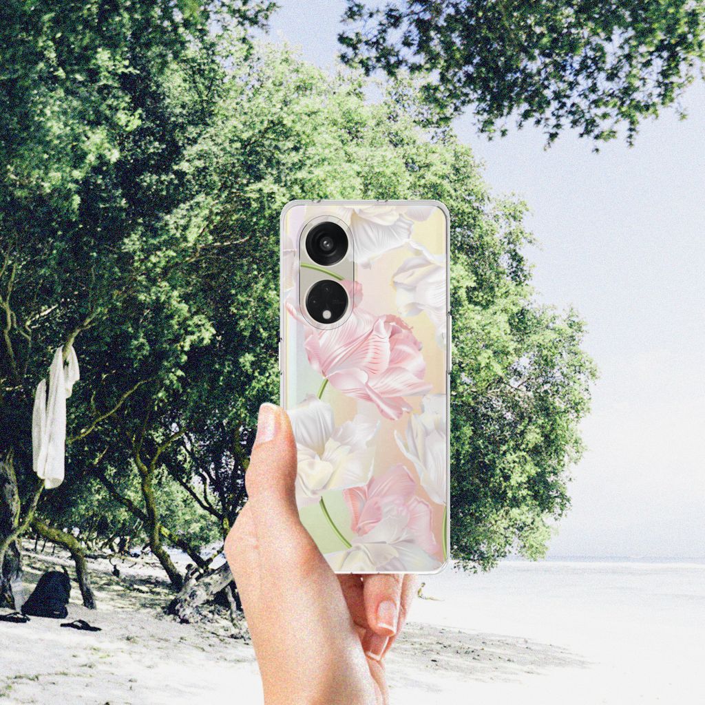 Een bosje bloemen doet een mens (en zijn smartphone) goed. De witte en roze bloemen op deze OPPO Reno8 T 5G TPU Case geven jouw smartphone een zeer mooie uitstraling. Je wordt er ook meteen een stuk rustiger van als je aan het appen of aan het bellen bent. Valt dan je telefoon op de grond, dan zal er dankzij de tpu case met het design Lovely Flowers ontstaan. Helemaal niet als je er een screenprotector bij hebt gekocht. Onze tpu cases met roze en witte bloemen zien er zeer prettig uit en zijn heel praktisch, getuige onder meer de opstaande randen en het flexibele materiaal. Alleen de achterkant van de tpu case wordt bedrukt met roze en witte bloemen. Op deze tpu case kun je trouwens ook een eigen ontwerp zetten. In een paar simpele stappen ontwerp je zelf een stand case met daarop jouw favoriete bloemen.