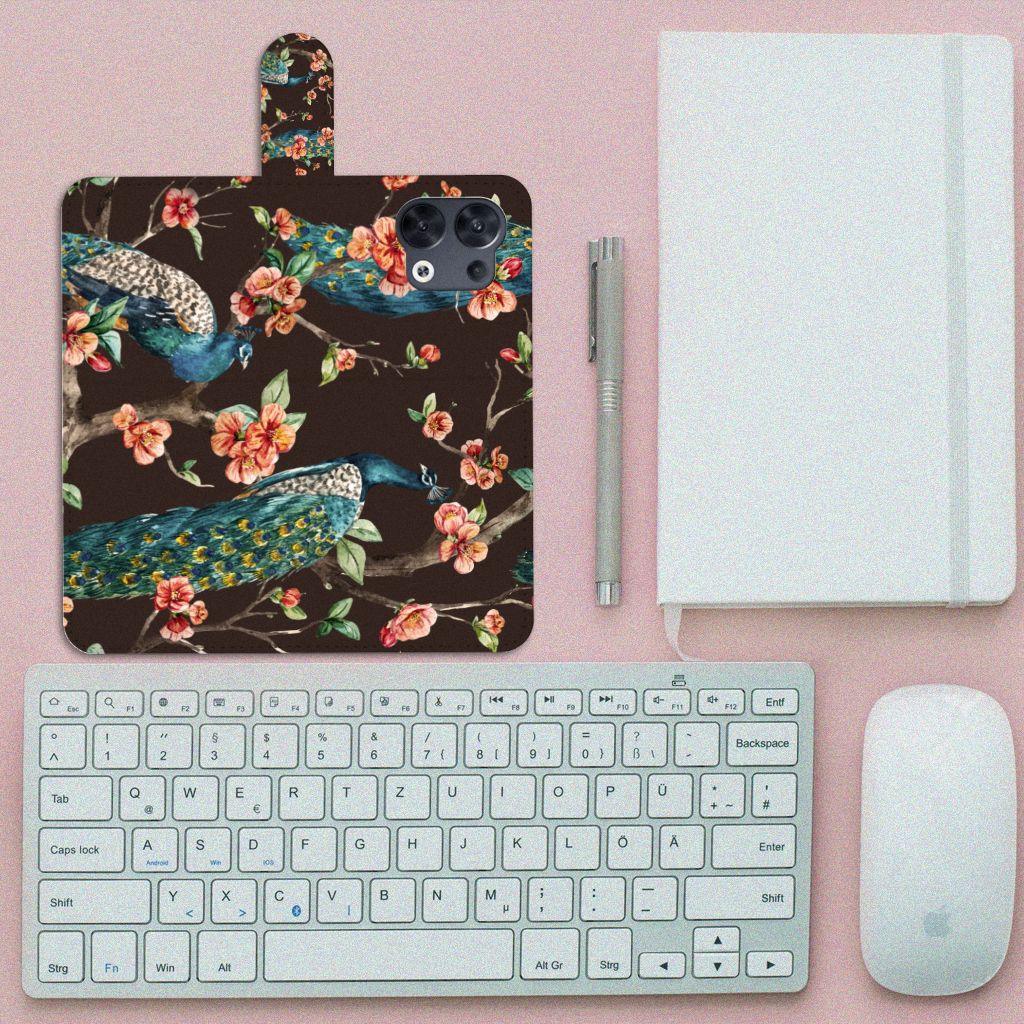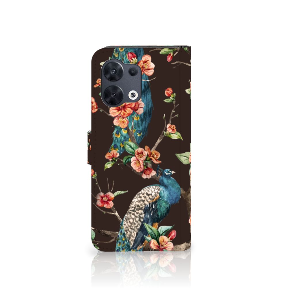 OPPO Reno8 Telefoonhoesje sluit met magnetisch lipje Pauw | Bloemen