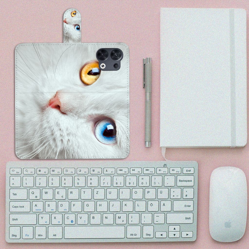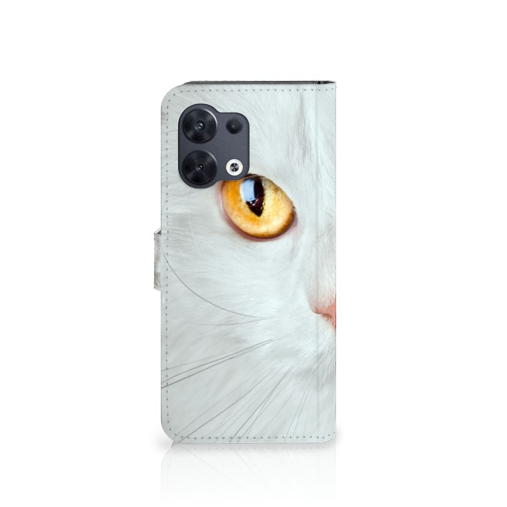 OPPO Reno8 Telefoonhoesje met magnetisch lipje als sluiting Witte Kat