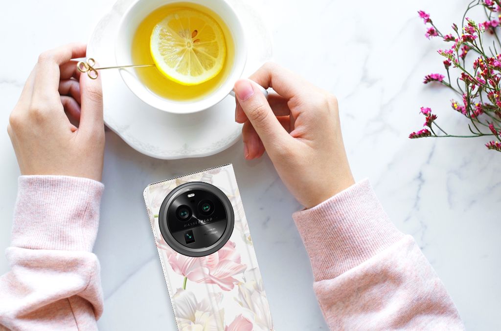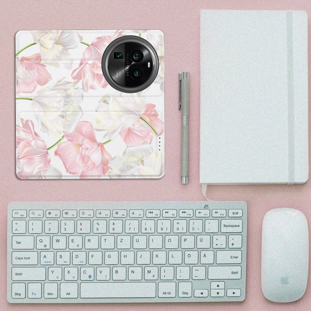 Een bosje bloemen doet een mens (en zijn smartphone) goed. De witte en roze bloemen op dit OPPO X6 Pro Smart Cover geven jouw smartphone een zeer mooie uitstraling. Je wordt er ook meteen een stuk rustiger van als je aan het appen of aan het bellen bent. Valt dan je telefoon op de grond, dan zal er dankzij de stand case met het design Lovely Flowers ontstaan. Onze stand cases met roze en witte bloemen zien er zeer prettig uit en zijn heel praktisch, wat blijkt uit onder meer het vakje aan de binnenkant en de handige standaard waarmee je de smartphone rechtop op tafel neer kunt zetten. De roze en witte bloemen passen goed op alle zijden van de case. Op deze stand case van leer en TPU (houder aan de binnenkant) kun je trouwens ook je eigen bloemige ontwerp zetten. In een paar simpele stappen maak je zelf een stand hoesje met daarop jouw mooiste bloemen.