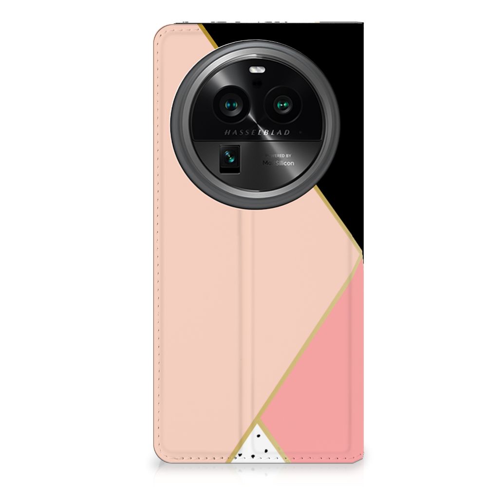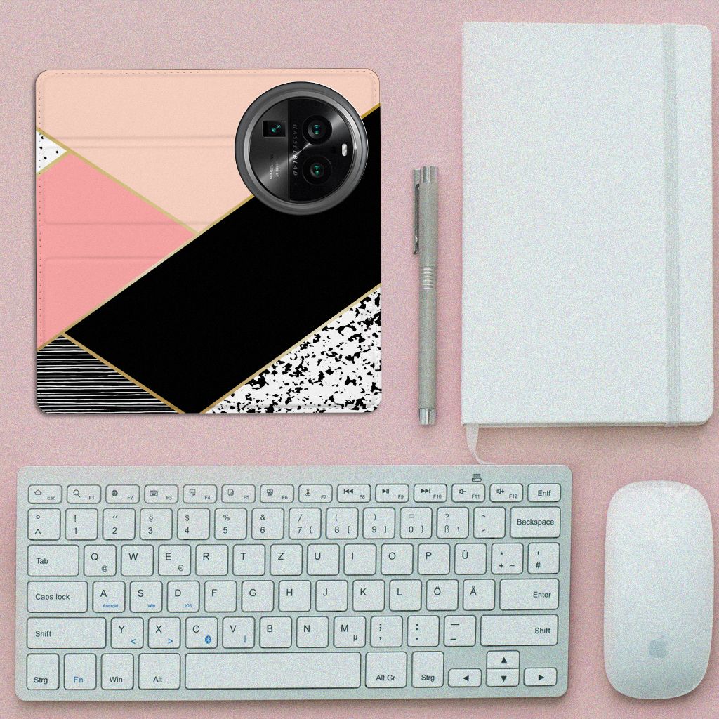 OPPO X6 Pro Print Stand Case Zwart Roze Vormen