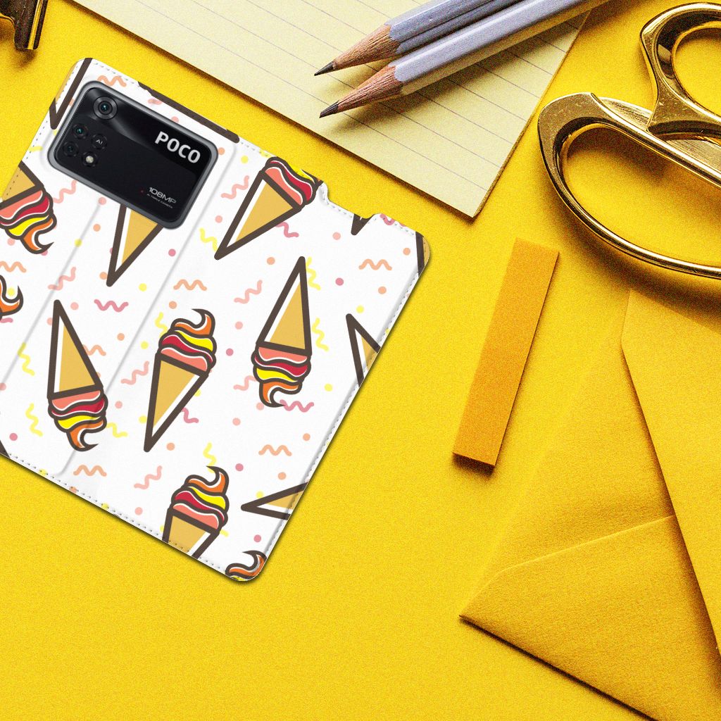 Een vrolijke Poco X4 Pro 5G Flip Style Cover met daarop verschillende ijsjes. Als je daar geen zomers gevoel meer van krijgt, weten wij het ook niet meer. De zomer en ijsjes zijn onlosmakelijk met elkaar verbonden. Tijdens een bezoekje aan het strand mag een lekker ijsje bijvoorbeeld niet ontbreken. Een design hoesje met lekkere Icecream print past daar natuurlijk ook ontzettend goed bij. Jouw telefoon is helemaal beschermd met een stand case met ijsjes design. De aankoop van deze case is een heerlijke investering, die zich gegarandeerd terugbetaalt. Alle zijden van dit hoesje worden bedrukt met ijsjes. De case heeft een speciale standaard en de houder aan de binnenzijde is van TPU. Onder alle weersomstandigheden zal deze case met opbergvakje perfect functioneren, ook in de zomer met een ijsje in je hand. Dit smaakvolle hoesje is zeer goedkoop te bestellen en wordt zeer snel bezorgd.