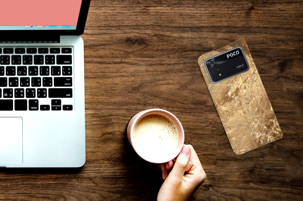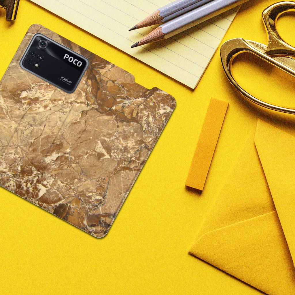 Dit design hoesje met Marmer in lichtbruine kleur is voor de artistiekelingen onder ons. De Grieken en Romeinen wisten het marmer al te waarderen door het in de bouw toe te passen. Naast het witte marmer zijn de diverse soorten marmer in een gevarieerde kleurensamenstelling te krijgen. We hebben verschillende mooie kleuren op design hoesjes gezet, zoals in dit geval het lichtbruine marmer. Dit is een Poco X4 Pro 5G Standcase met marmer in lichtbruine kleur. Het marmer wordt bedrukt op alle zijden van een stand case, die beschikt over 1 vakje voor een pasje en een magnetische sluiting aan de binnenzijde. Verder heeft de hoes een houder van TPU. Door de rijkdom aan kleuren en varianties in afwerking kunnen ontwerpers met marmer schitterende architectonische projecten realiseren. Wij hebben hetzelfde gedaan en onze ontwerper veel vrijheid geboden. Het resultaat zie je terug in deze stand case met lichtbruin marmer, dat de ideale bescherming voor jouw smartphone is.
