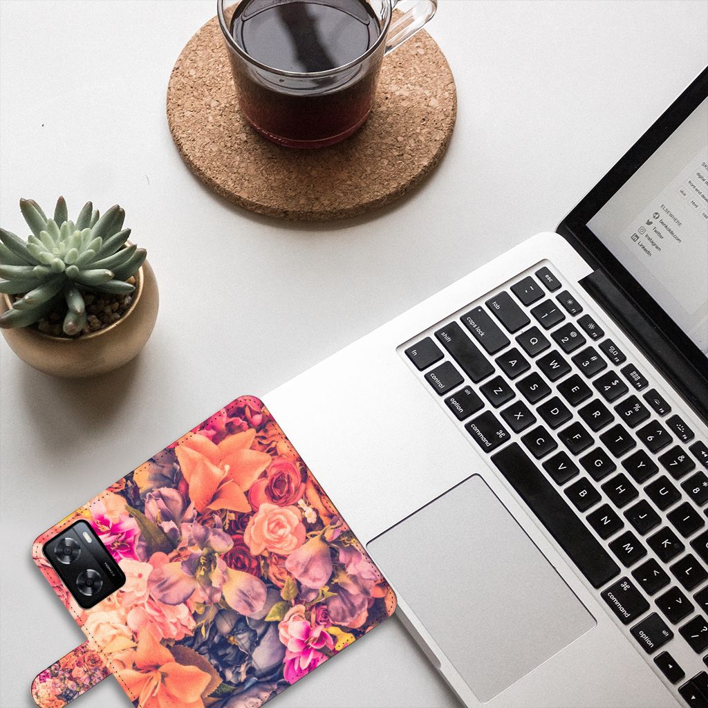 PPO A57 | A57s | A77 4G Hoesje met ruimte voor 3 pasjes Bosje Bloemen