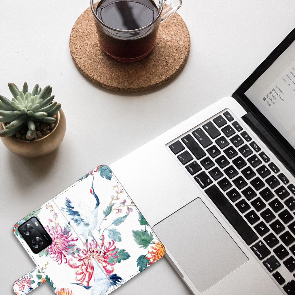 PPO A57 | A57s | A77 4G Telefoonhoesje sluit met magnetische lipje Bird Flowers
