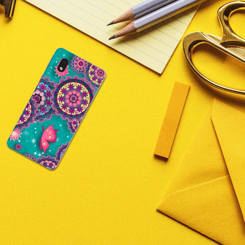 Deze opvallende Samsung Galaxy A01 Core Hoesje maken met Cirkels en Vlinders is een ware eyecatcher. De meeste vlinders hebben een onopvallende vleugelkleur en dat kun je van de soort op dit hoesje ook zeker wel zeggen. Wij kunnen deze opvallende vlinders en cirkels op een zeer handige tpu case zetten. Deze hoesjes zijn gewild omwille hun flexibiliteit. Met onze geavanceerde printer zetten we de print van opvallende vlinders en cirkels op de achterkant van het hoesje. De case met vlinders en cirkels blijft aan de zijkanten doorzichtig, zodat je maximaal het design van je smartphone behoudt. Verder is je telefoon natuurlijk goed beschermd met deze tpu case met print van blauwe vlinders. De bovenkant wordt bedrukt, de zijkanten niet. Met een screenprotector bescherm je ook het scherm maximaal.