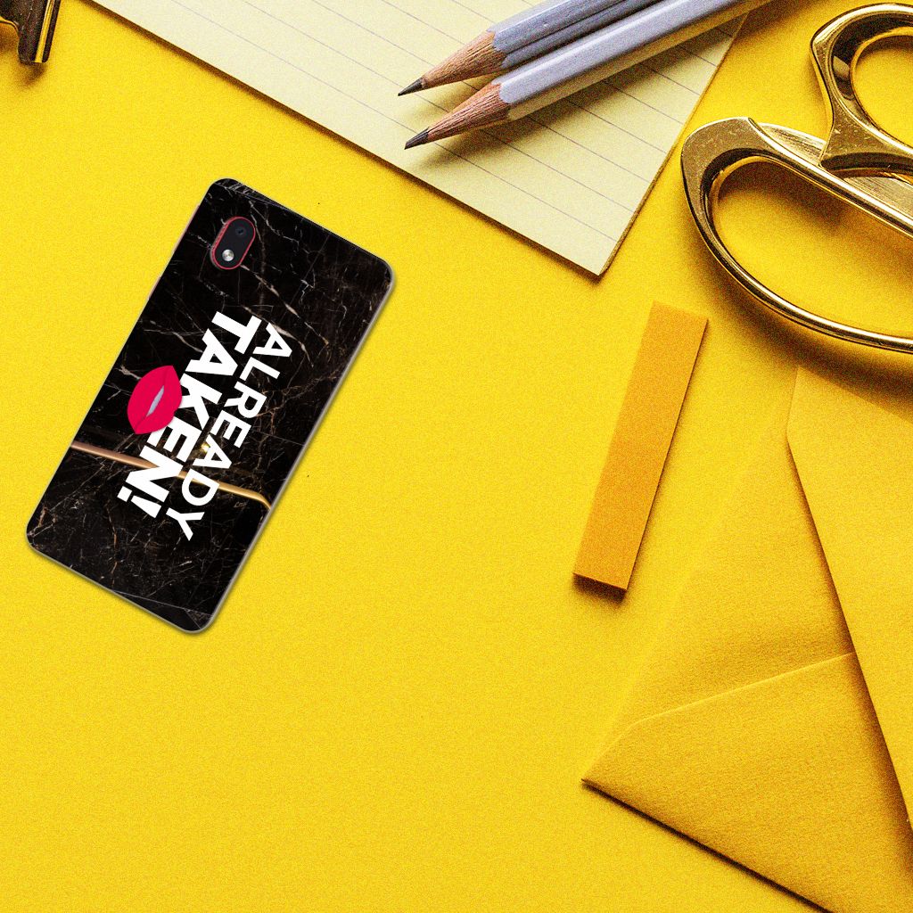 Met deze Samsung Galaxy A01 Core Siliconen hoesje met naam met Already Taken Black tekst maak je duidelijk dat jouw smartphone een kostbaar bezit is, waar je zeer lang over wilt beschikken. Je telefoon neem je waarschijnlijk vaak ter hand, dus dan zal de boodschap als je over dit hoesje beschikt zeker weten overkomen. De TPU case wordt alleen aan de bovenkant bedrukt en is zeer flexibel. De randen van het hoesje blijven transparant. Wil je een eigen tekst op je hoesje zetten? Dit kan ook, met onze Phone Case Designer. Deze unieke ontwerpmodule is ook geschikt om het design uit te breiden met foto’s, effecten en patronen.