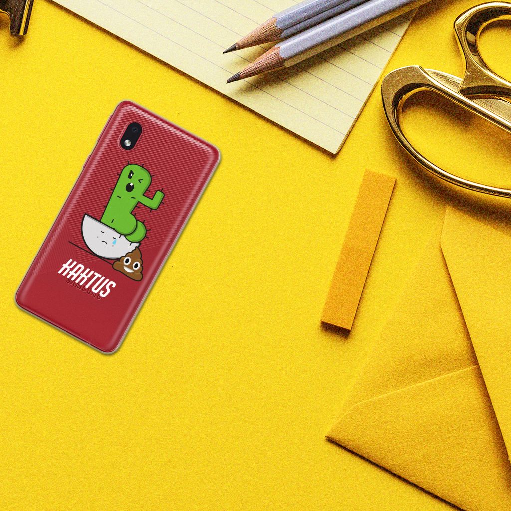 De cactus is leuk, hip en makkelijk te verzorgen. Maar wie denkt dat hij helemaal zonder aandacht kan, heeft het mis. Op dat moment komt hij in opstand, zoals op dit grappige design hoesje met cactus te zien is. Deze Telefoonhoesje met Naam met Cactus Poo design is van alle markten thuis. Het is een zeer veilig maar ook prachtig en praktisch hoesje. Dat bewijzen het flexibele en schokabsoberende materiaal en het lichte gewicht. De meeste cactussen komen uit Amerika. Daar groeien ze in hun natuurlijke omgeving, de woestijn en steppen. Maar ze groeien ook in tropische regenwouden. Dit geeft aan dat de cactus een plant is die zich makkelijk aanpast. Dat geldt dus helaas niet voor de cactus op dit tpu hoesje, maar jouw Samsung Galaxy A01 Core is wel goed beschermd. Valt de telefoon op de grond, dan beschermen de opstaande randen van de case het touchscreen. Alleen de bovenkant van dit hoesje wordt bedrukt met de geinige kaktus. De zijkanten van de TPU case blijven transparant.