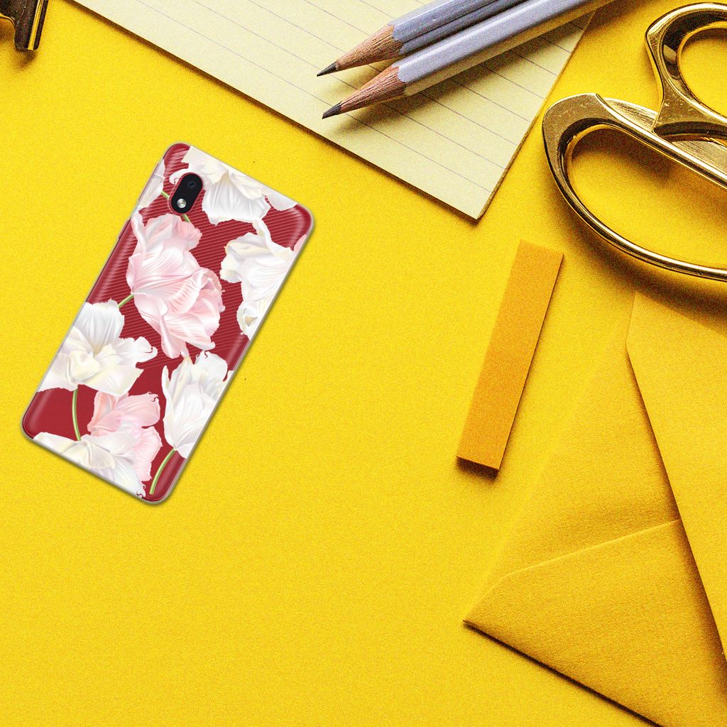 Een bosje bloemen doet een mens (en zijn smartphone) goed. De witte en roze bloemen op deze Samsung Galaxy A01 Core TPU Case geven jouw smartphone een zeer mooie uitstraling. Je wordt er ook meteen een stuk rustiger van als je aan het appen of aan het bellen bent. Valt dan je telefoon op de grond, dan zal er dankzij de tpu case met het design Lovely Flowers ontstaan. Helemaal niet als je er een screenprotector bij hebt gekocht. Onze tpu cases met roze en witte bloemen zien er zeer prettig uit en zijn heel praktisch, getuige onder meer de opstaande randen en het flexibele materiaal. Alleen de achterkant van de tpu case wordt bedrukt met roze en witte bloemen. Op deze tpu case kun je trouwens ook een eigen ontwerp zetten. In een paar simpele stappen ontwerp je zelf een stand case met daarop jouw favoriete bloemen.
