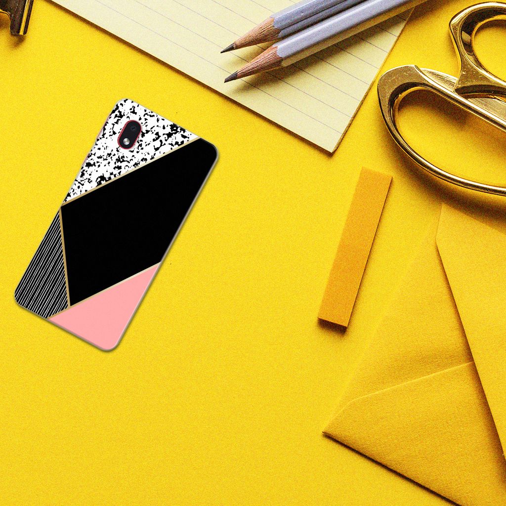 TPU Hoesje Samsung Galaxy A01 Core Zwart Roze Vormen Design