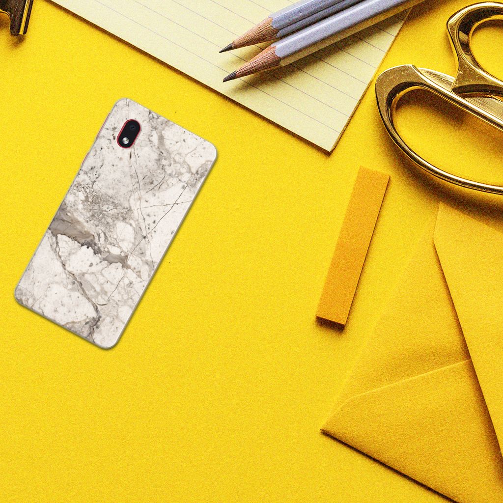 Dit design hoesje met Marmer Beige is voor de artistieke personen onder ons. De Grieken en Romeinen wisten het steen al te waarderen door het als bouw- en bekledingsmateriaal toe te passen. Naast het witte Carrara marmer met haar zacht grijze geaderde belijning zijn de diverse marmersoorten in een ruim kleurenpallet te krijgen. We hebben verschillende kleuren op design hoesjes gezet, zoals in dit geval beige marmer. Dit is een Samsung Galaxy A01 Core TPU Siliconen Hoesje met marmer in beige kleur. Het marmer wordt bedrukt op de voorkant van een tpu case, die beschikt over opstaande randen aan de voorkant en goed combineert met een screenprotector. De rijkheid aan kleuren en varianties in afwerking geeft designers de vrijheid om met marmer hele mooie architectonische projecten te realiseren. Wij hebben onze designer ook veel vrijheid gegeven. Het resultaat zie je terug in deze tpu case met beige marmer, die jouw smartphone goed beschermt. De zijkanten van de case worden niet bedrukt met marmer.
