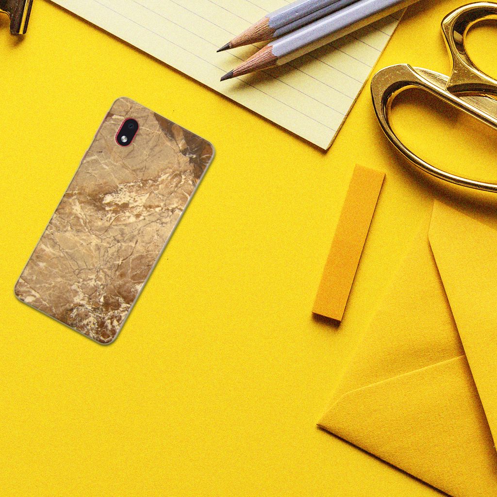Dit design hoesje met Marmer in lichtbruine kleur is voor de artistiekelingen onder ons. De Grieken en Romeinen wisten het marmer al te waarderen door het in de bouw toe te passen. Naast het witte marmer zijn de diverse soorten marmer in een gevarieerde kleurensamenstelling te krijgen. We hebben verschillende mooie kleuren op design hoesjes gezet, zoals in dit geval het lichtbruine marmer. Dit is een Samsung Galaxy A01 Core TPU Siliconen Hoesje met marmer in lichtbruine kleur. Het marmer wordt bedrukt op de voorkant van een tpu case, die beschikt over opstaande randen aan de voorkant en heel goed combineert met een screenprotector van glas of van folie. Door de rijkdom aan kleuren en varianties in afwerking kunnen ontwerpers met marmer schitterende architectonische projecten realiseren. Wij hebben hetzelfde gedaan en onze ontwerper veel vrijheid geboden. Het resultaat zie je terug in deze tpu case met lichtbruin marmer, die jouw smartphone goed beschermt. De zijkanten van de case worden niet bedrukt met het lichtbruine marmer.