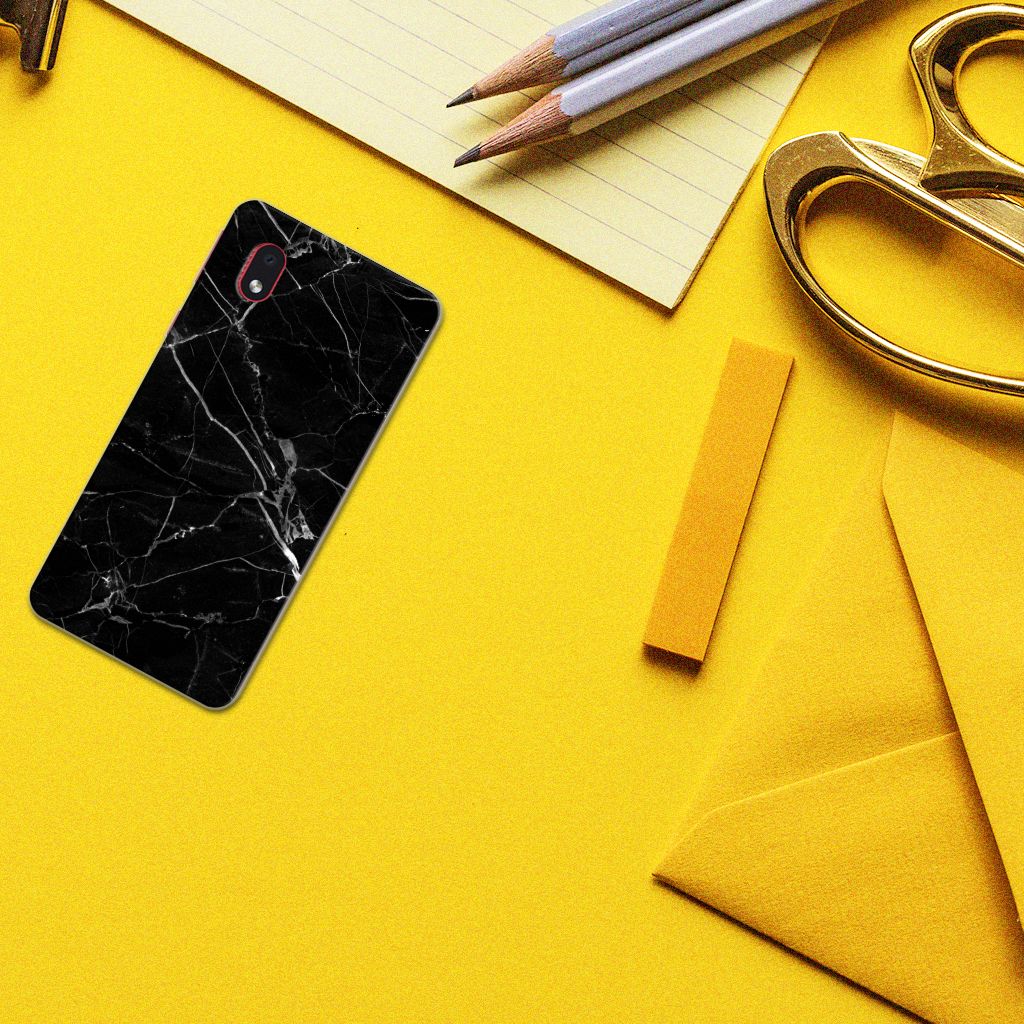 Dit design hoesje met Marmer Zwart is voor de artistieke personen onder ons. De Grieken en Romeinen wisten het materiaal al te waarderen door het in de bouw toe te passen. Naast het witte marmer met haar zacht grijze geaderde belijning zijn de diverse soorten in een gevarieerd kleurenpallet te krijgen. We hebben mooie kleuren op design hoesjes gezet, zoals in dit geval zwart marmer. Dit is een Samsung Galaxy A01 Core TPU Siliconen Hoesje met marmer in bruine kleur. Het marmer wordt bedrukt op de voorkant van een tpu case, die beschikt over opstaande randen aan de voorkant en heel goed combineert met een screenprotector van glas of van folie. De rijkdom aan kleuren en varianties in afwerking geeft ontwerpers de vrijheid om met marmer hele mooie architectonische projecten te realiseren. Wij hebben onze designer tevens veel vrijheid gegeven. Het resultaat zie je terug in deze tpu case met zwart marmer, die jouw smartphone goed beschermt. De zijkanten van de case worden niet bedrukt met het zwarte marmer.