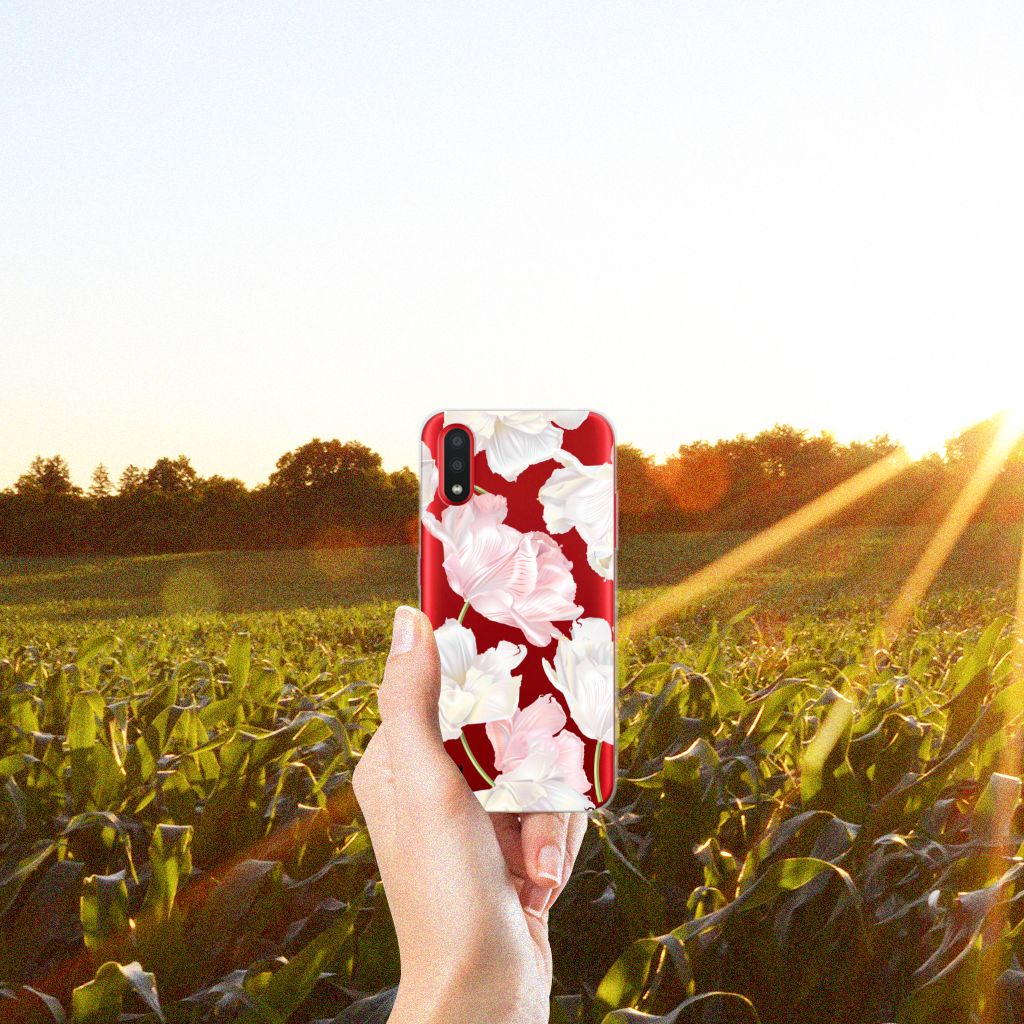 Een bosje bloemen doet een mens (en zijn smartphone) goed. De witte en roze bloemen op deze Samsung Galaxy A01 TPU Case geven jouw smartphone een zeer mooie uitstraling. Je wordt er ook meteen een stuk rustiger van als je aan het appen of aan het bellen bent. Valt dan je telefoon op de grond, dan zal er dankzij de tpu case met het design Lovely Flowers ontstaan. Helemaal niet als je er een screenprotector bij hebt gekocht. Onze tpu cases met roze en witte bloemen zien er zeer prettig uit en zijn heel praktisch, getuige onder meer de opstaande randen en het flexibele materiaal. Alleen de achterkant van de tpu case wordt bedrukt met roze en witte bloemen. Op deze tpu case kun je trouwens ook een eigen ontwerp zetten. In een paar simpele stappen ontwerp je zelf een stand case met daarop jouw favoriete bloemen.