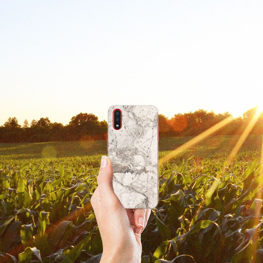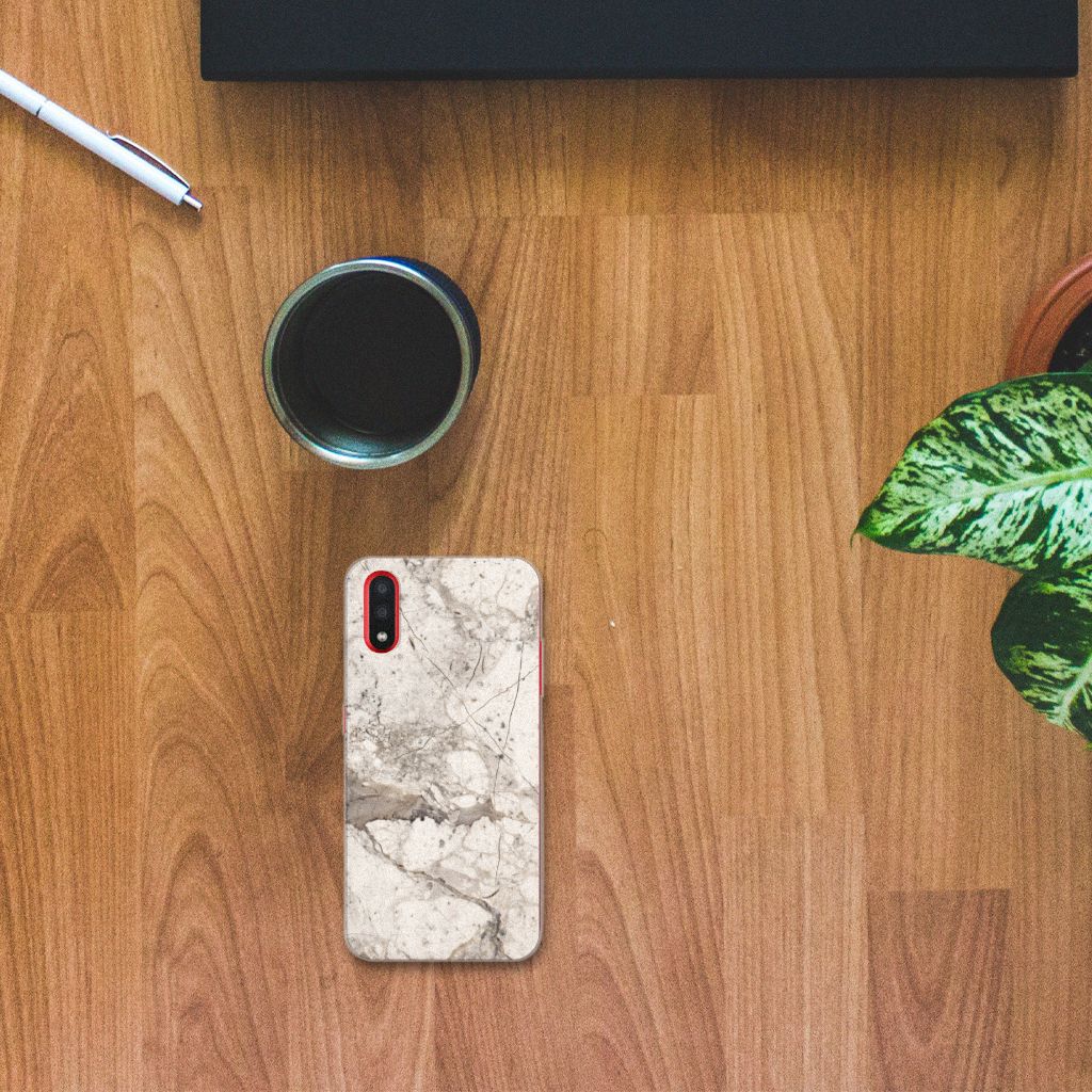 Dit design hoesje met Marmer Beige is voor de artistieke personen onder ons. De Grieken en Romeinen wisten het steen al te waarderen door het als bouw- en bekledingsmateriaal toe te passen. Naast het witte Carrara marmer met haar zacht grijze geaderde belijning zijn de diverse marmersoorten in een ruim kleurenpallet te krijgen. We hebben verschillende kleuren op design hoesjes gezet, zoals in dit geval beige marmer. Dit is een Samsung Galaxy A01 TPU Siliconen Hoesje met marmer in beige kleur. Het marmer wordt bedrukt op de voorkant van een tpu case, die beschikt over opstaande randen aan de voorkant en goed combineert met een screenprotector. De rijkheid aan kleuren en varianties in afwerking geeft designers de vrijheid om met marmer hele mooie architectonische projecten te realiseren. Wij hebben onze designer ook veel vrijheid gegeven. Het resultaat zie je terug in deze tpu case met beige marmer, die jouw smartphone goed beschermt. De zijkanten van de case worden niet bedrukt met marmer.