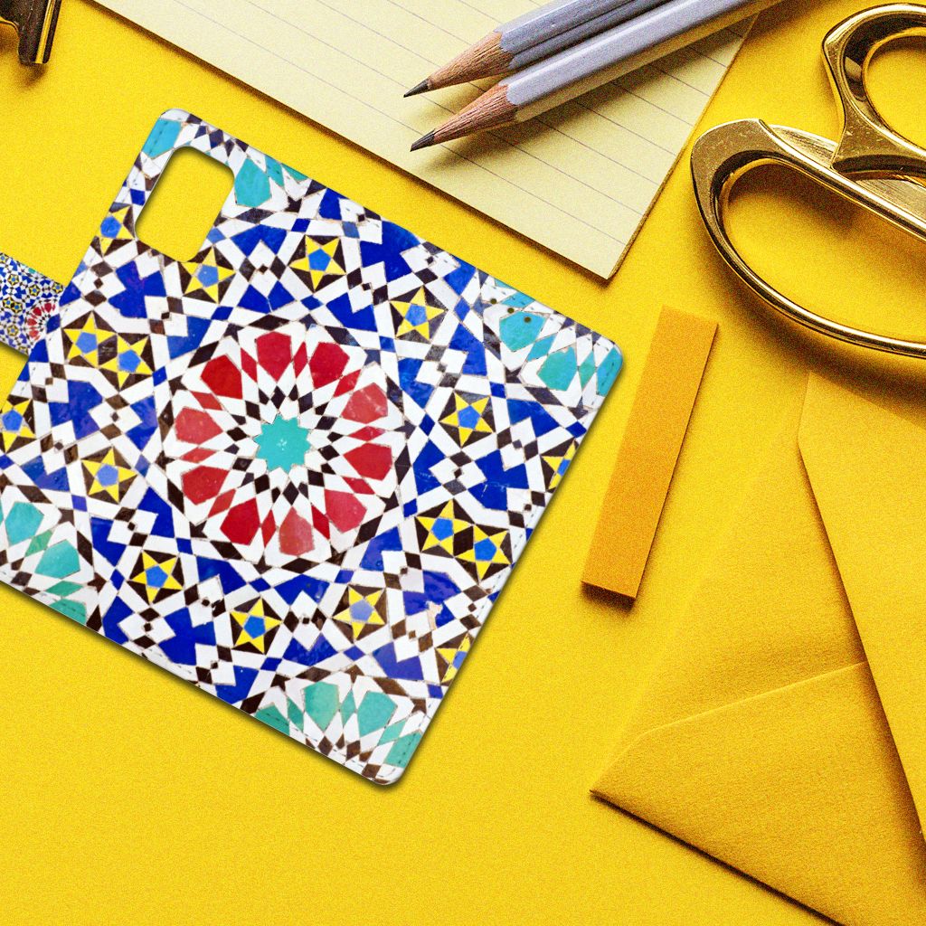 Aan design hoesjes met kunstvormen geen gebrek in onze uitgebreide collectie. Wat dacht je van dit design hoesje met Mozaïek . Dit is een kunstvorm waarbij een grote afbeelding wordt gemaakt uit een groot aantal kleine gekleurde steentjes (tesserae), die in een vloer of wand worden gemetseld. Deze gekleurde steentjes zie je terug op dit boekhoesje met design van mozaïek. Een boekhoesje is zo’n beetje de veiligste case die er bestaat. Een Samsung Galaxy A02s | M02s Bookcase met print zorgt voor een volledige bescherming van je smartphone en wordt aan alle zijden bedrukt met mozaïek. Een deel van de foto’s staat ook op het lipje aan de buitenzijde. Verder is de houder aan de binnenzijde van TPU. De Grieken en Romeinen beheersten de kunst al. Op diverse plaatsen in Europa zijn mozaïeken teruggevonden die tot op de dag van vandaag goed bewaard zijn gebleven. Met een hoesje met mozaïek blijft jouw telefoon in tact. Je pasjes en briefgeld kun je in de vakjes aan de binnenzijde stoppen