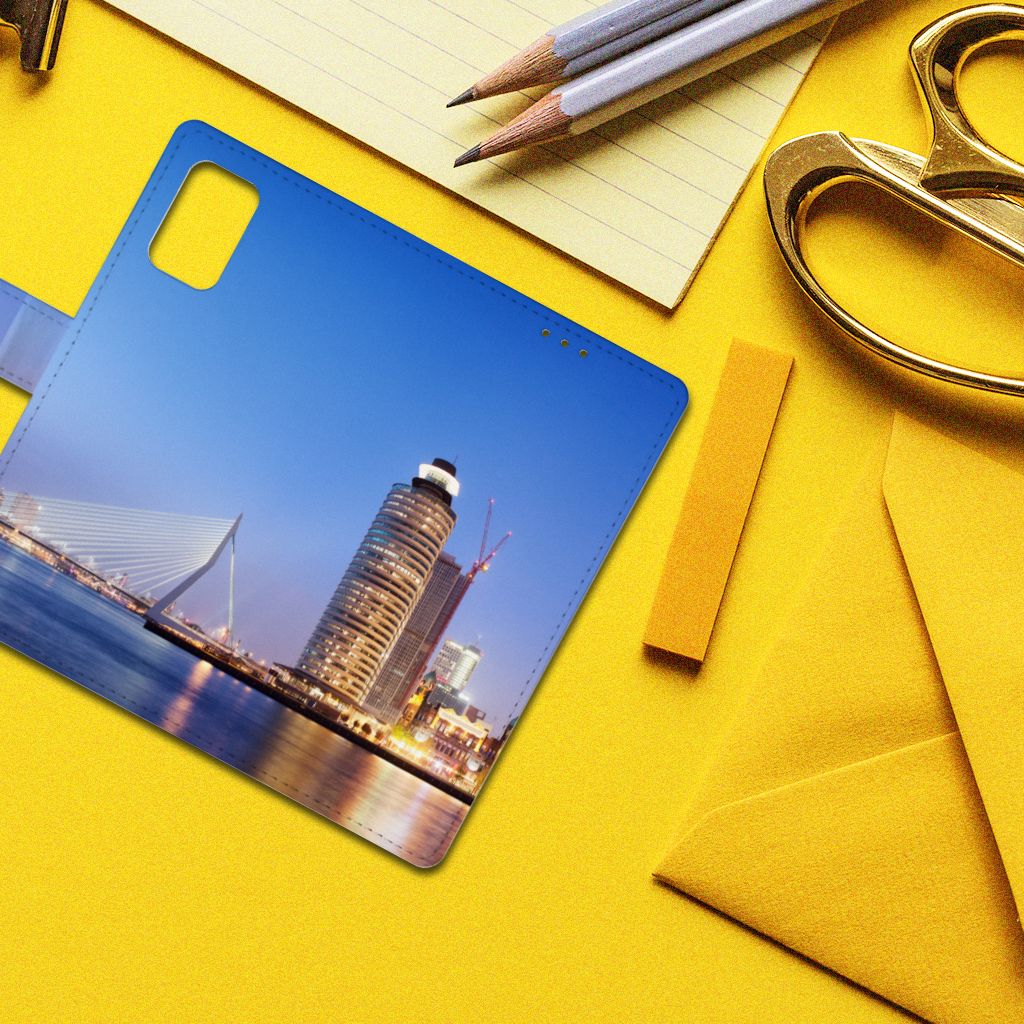 Een hoesje met de Rotterdamse skyline is niet alleen voor de plaatselijke inwoners een bijzonderheid. Ook jij zult glimmen van trots wanneer het gaat over jouw boekhoesje met de Rotterdamse skyline. Sinds 1975 zijn hoogbouw en Rotterdam onlosmakelijk met elkaar verbonden. Dat zie je duidelijk terug als je dit smartphone hoesje koopt. Een Samsung Galaxy A02s | M02s Flip Cover is zeer praktisch dankzij de opbergvakjes aan de binnenzijde en het magnetische lipje aan de buitenzijde en beschermt jouw smartphone aan alle zijden. Dankzij het platte Hollandsche landschap zie je de Rotterdamse binnenstad vanuit verschillende posities liggen. Beloon jezelf en je telefoon met dit mooi Rotterdamse boekhoesje. De case heeft een houder van TPU, waar jouw telefoon precies in past.
