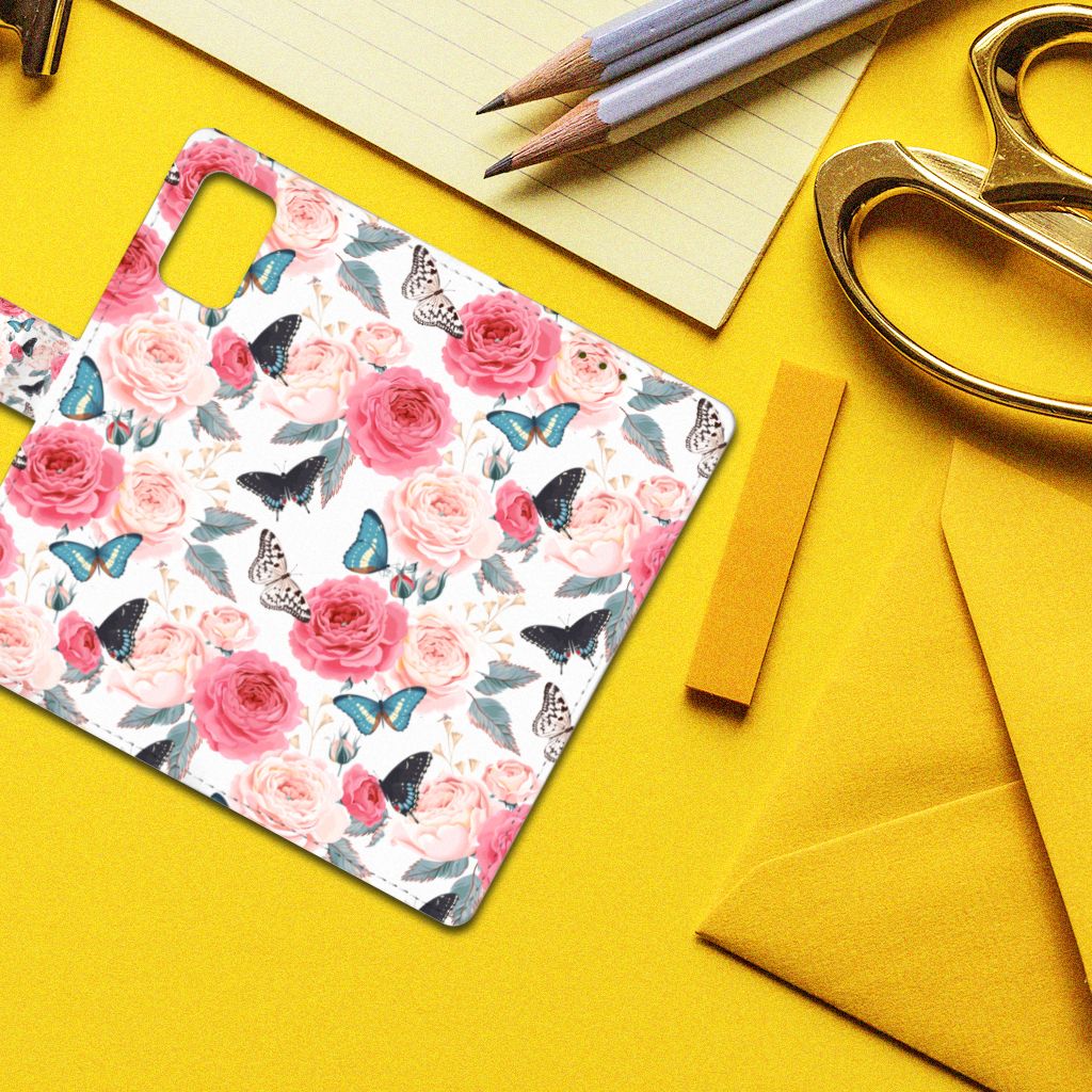 Samsung Galaxy A02s | M02s Hoesje gemaakt van TPU en kunstleer Butterfly Roses