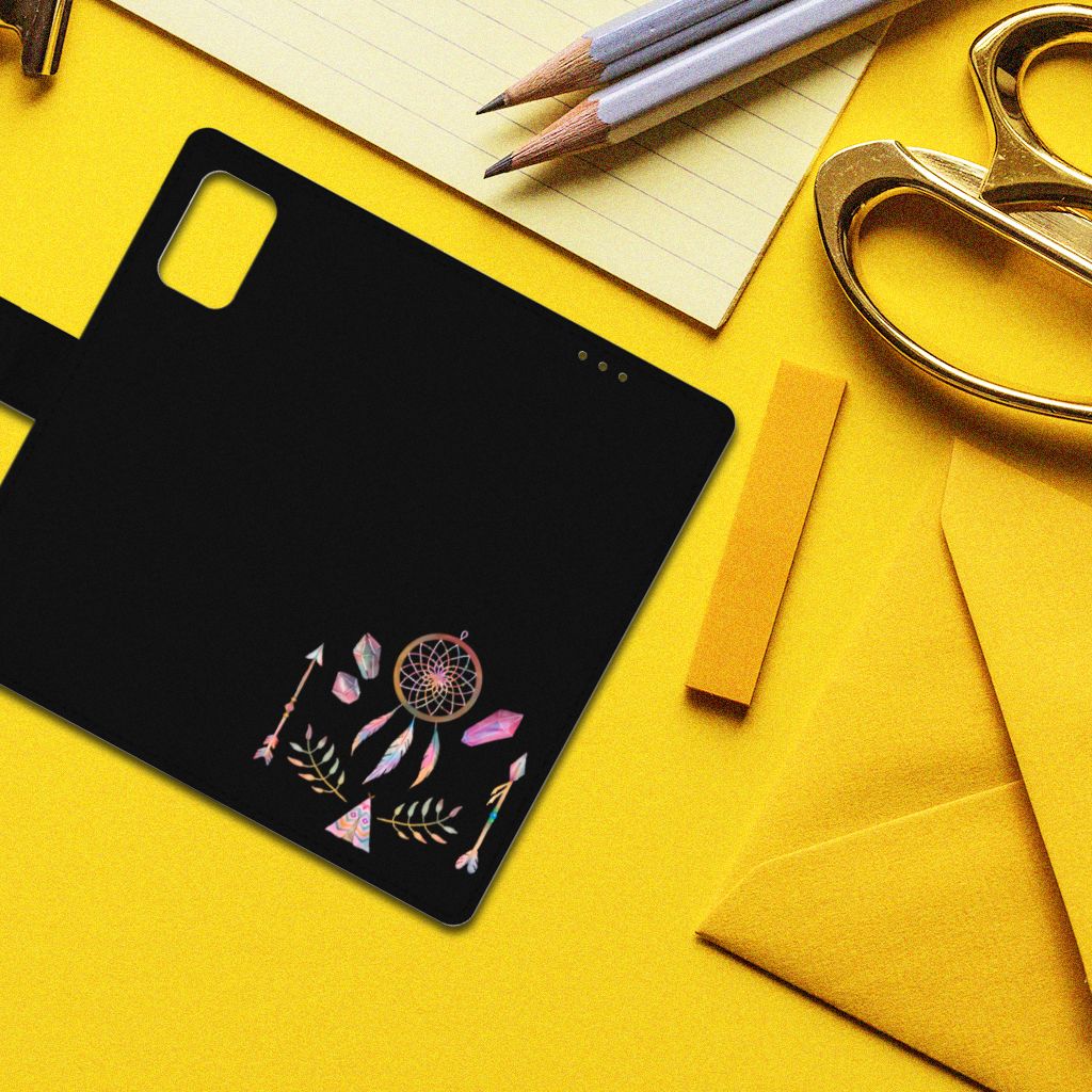 Een dromenvanger werd lang geleden al door een indianenvolk in Noord-Amerika gebruikt om nare dromen te weren. Nu nog hangen mensen over de hele wereld dromenvangers boven hun bed. Maar ook op een telefoonhoesje staat zo’n boho dreamcatcher heel mooi. Dit mooie design dat bestaat uit een tipi, pijlen en dromenvanger heeft veel verschillende prachtige kleuren. Maar omdat het ontwerp minimalistisch en klein is, is het design toch subtiel te noemen. Met dit Leuk Hoesje voor de Samsung Galaxy A02s | M02s heb je al je belangrijkste bezittingen bij de hand. Binnenin zit namelijk een pasjeshouder voor twee pasjes. Daar bewaar je je belangrijkste (bank)passen in en je briefgeld. En uiteraard is je telefoon ook goed beschermd tegen krassen en beschadigingen.