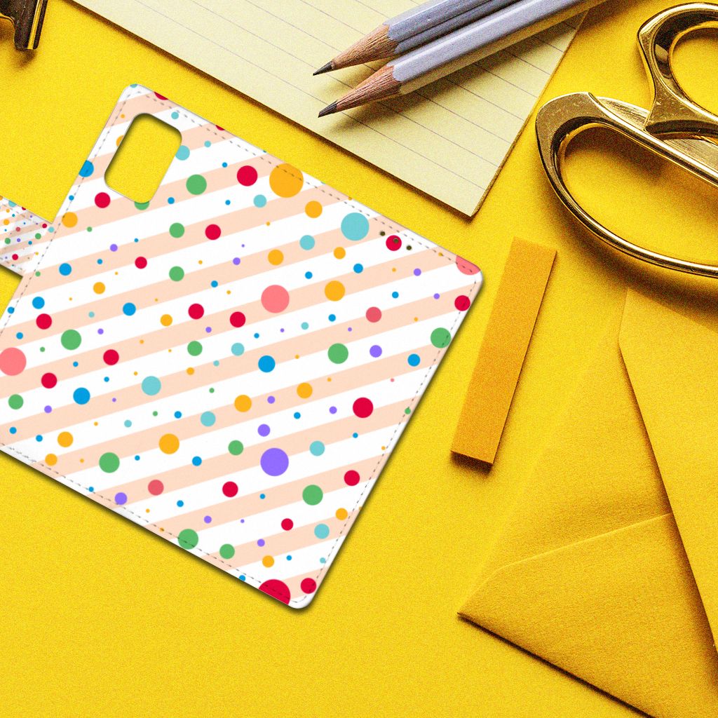 Een Samsung Galaxy A02s | M02s Telefoon Hoesje met verschillende kleuren stippen is een schitterende bescherming van jouw smartphone. Het boekhoesje met het design Dots in alle kleuren van de regenboog komt voor jou als geroepen. Maak je geen gebruik van dit zeer mooie hoesje, dan kan het met jouw smartphone een beetje beroerd aflopen. Dit mooie boekhoesje met verschillende kleuren stippen zorgt voor een volledige bescherming van je smartphone en wordt aan alle zijden bedrukt. Sommige stippen staan ook op het magnetische lipje aan de buitenzijde. Verder is de houder aan de binnenzijde van TPU. Jouw telefoon is dus zeer goed opgeborgen en kan geen kant op. Met een hoesje met stippen in verschillende kleuren op alle zijden blijft jouw telefoon volledig in tact. Heb je liever een boekhoesje met stippen in andere opvallende kleuren? Ontwerp dan zelf case met je eigen foto’s en teksten!