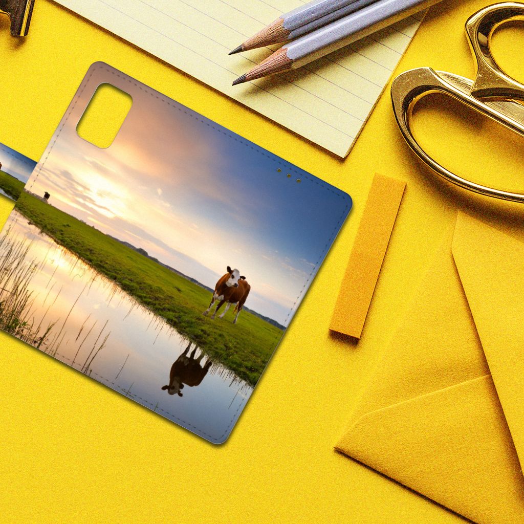 Houd jij van de natuur en het boerenleven? Dan is dit telefoonhoesje, waar een koe opstaat, wel wat voor jou. Op de bookcase staat een idyllisch plaatje van een koe in een weiland. Dit levert een rustig en vrolijk Samsung Galaxy A02s | M02s hoesje op. Alle kanten van het Telefoonhoesje met Pasjes zijn bedrukt, inclusief het sluitlipje. Daarnaast beschermt dit hoesje jouw telefoon aan alle kanten. Ook als je hem op het scherm laat vallen, is er niets aan de hand als dit hoesje om jouw telefoon zit. Dan blijft hij namelijk gewoon goed beschermd. En een goed beschermde telefoon is erg belangrijk, een ongelukje zit in een klein hoekje en je wilt niet dat dit je honderden euro’s gaat kosten.
