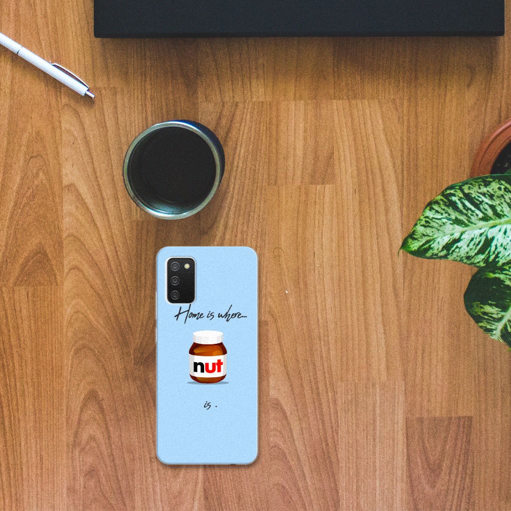 Ben je liefhebber van chocoladepasta, dan is dit het perfecte Samsung Galaxy A02s Siliconen Case voor jou. De chocoladepasta is enorm populair, dus is het niet zo heel gek dat je een ‘Nut Home’ tpu case in een blauwe kleur aantreft in ons assortiment design hoesjes met illustraties. Dit tpu hoesje is zeer flexibel en past altijd in je broekzak. Alleen de bovenkant van dit hoesje wordt door ons bedrukt in blauwe kleur met de pasta, op zeer duurzame manier. Mensen die houden van de bekendste pasta van het moment, kiezen voor deze blauwe tpu case. Er staan geen illustraties op de zijkanten van een tpu case. Je kunt ook een eigen tekst toevoegen aan het opvallende design.