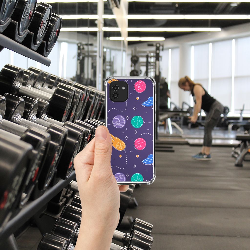 Ben je op zoek naar een uniek telefoonhoesje voor je Samsung Galaxy A03? Dan ben je bij B2C Telecom aan het juiste adres! Speciaal voor jou hebben we dit prachtige Space design in onze collectie hoesjes opgenomen. Het design wordt bedrukt op een Anti Shock Bumper Case en is gemaakt van flexibel rubber. Het hoesje is perfect voor de actieve smartphonegebruiker door de opstaande randen/hoeken. Denk aan mensen die veel sporten, reizen of wandelen en net iets meer zekerheid willen als het op hun geliefde telefoon aankomt. Het design wordt alleen aan de bovenkant van het hoesje bedrukt en de randen blijven transparant. Aan de zijkanten zijn uitsparingen gemaakt waardoor je met gemak alle knoppen en poorten kunt bedienen. Wij adviseren om dit hoesje in combinatie met een screenprotector te gebruiken voor een langere levensduur van je telefoon. Wil je dit hoesje nog iets extra's geven? Voeg dan gratis je naam of een quote toe! Is dit design hoesje toch niet helemaal wat je zocht? Ontwerp dan zelf een hoesje in ons ontwerpprogramma.