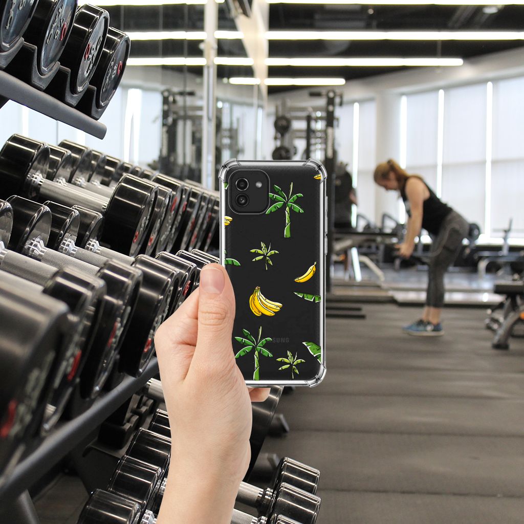 Ben je op zoek naar een uniek telefoonhoesje voor je Samsung Galaxy A03? Dan ben je bij B2C Telecom aan het juiste adres! Speciaal voor jou hebben we dit prachtige Banana Tree design in onze collectie hoesjes opgenomen. Het design wordt bedrukt op een Case en is gemaakt van flexibel rubber. Het hoesje is perfect voor de actieve smartphonegebruiker door de opstaande randen/hoeken. Denk aan mensen die veel sporten, reizen of wandelen en net iets meer zekerheid willen als het op hun geliefde telefoon aankomt. Het design wordt alleen aan de bovenkant van het hoesje bedrukt en de randen blijven transparant. Aan de zijkanten zijn uitsparingen gemaakt waardoor je met gemak alle knoppen en poorten kunt bedienen. Wij adviseren om dit hoesje in combinatie met een screenprotector te gebruiken voor een langere levensduur van je telefoon. Wil je dit hoesje nog iets extra's geven? Voeg dan gratis je naam of een quote toe! Is dit design hoesje toch niet helemaal wat je zocht? Ontwerp dan zelf een hoesje in ons ontwerpprogramma.