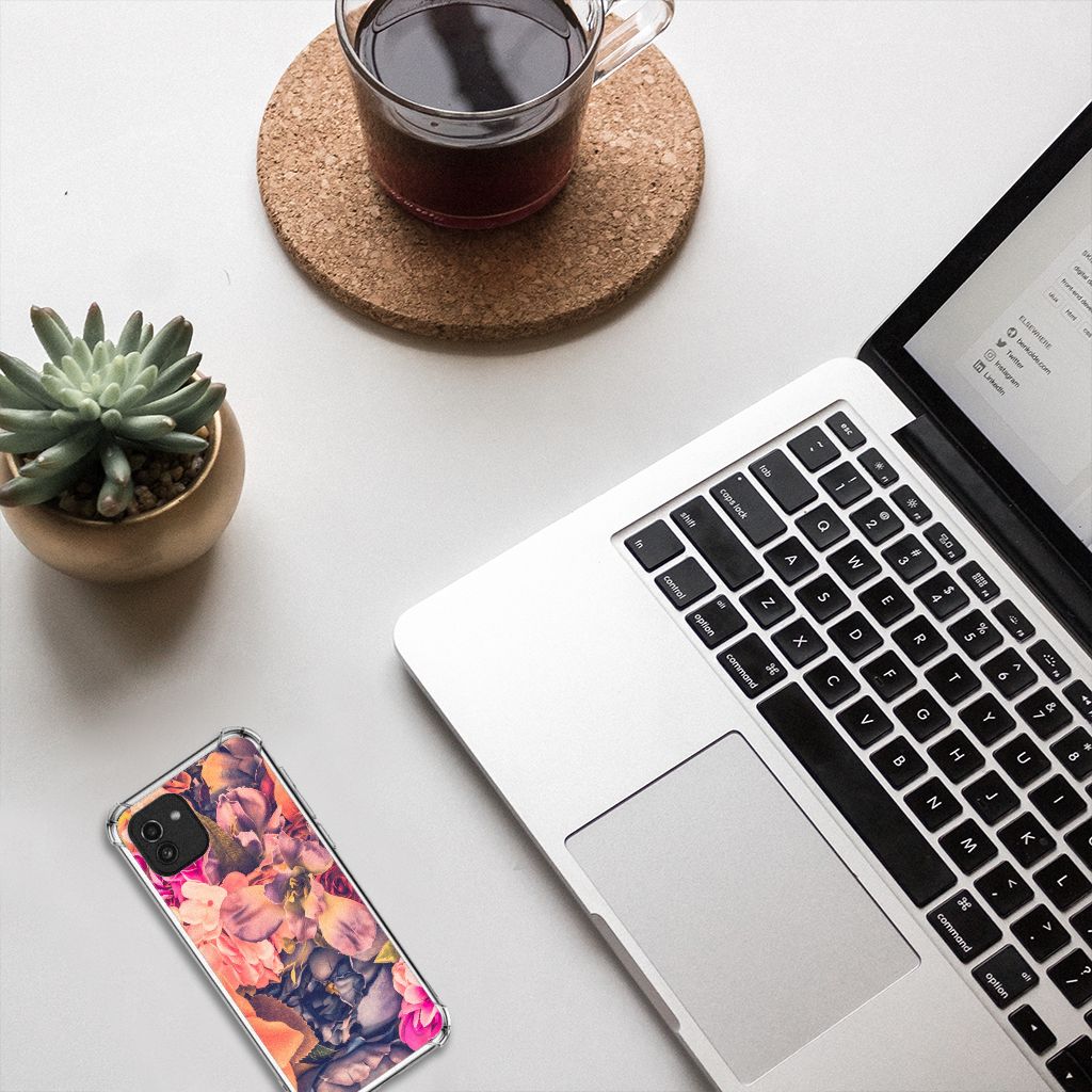 Ben je op zoek naar een uniek telefoonhoesje voor je Samsung Galaxy A03? Dan ben je bij B2C Telecom aan het juiste adres! Speciaal voor jou hebben we dit prachtige Bosje Bloemen design in onze collectie hoesjes opgenomen. Het design wordt bedrukt op een Case en is gemaakt van flexibel rubber. Het hoesje is perfect voor de actieve smartphonegebruiker door de opstaande randen/hoeken. Denk aan mensen die veel sporten, reizen of wandelen en net iets meer zekerheid willen als het op hun geliefde telefoon aankomt. Het design wordt alleen aan de bovenkant van het hoesje bedrukt en de randen blijven transparant. Aan de zijkanten zijn uitsparingen gemaakt waardoor je met gemak alle knoppen en poorten kunt bedienen. Wij adviseren om dit hoesje in combinatie met een screenprotector te gebruiken voor een langere levensduur van je telefoon. Wil je dit hoesje nog iets extra's geven? Voeg dan gratis je naam of een quote toe! Is dit design hoesje toch niet helemaal wat je zocht? Ontwerp dan zelf een hoesje in ons ontwerpprogramma.