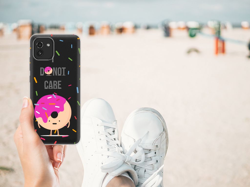 De cartoon met Donut op dit design hoesje geeft jouw smartphone een grappige en vrolijke uitstraling. De Samsung Galaxy A03 Siliconen Case zorgt ervoor dat je je schouders op zult halen als je telefoon een keer op de grond valt. Omdat er geen schade zal optreden kun jij je weg weer heel makkelijk vervolgen. De grappige Donut Care tpu case is nergens anders te krijgen. Het design is namelijk van de hand van onze eigen ontwerper. Daarnaast zal de case jouw smartphone goed beschermen. Een Donut Care tpu case is een zeer flexibel hoesje. Dit komt onder andere door het elastische en onbreekbare materiaal. Verder is de case zeer praktisch. Wat denk je bijvoorbeeld van de opstaande randen aan de voorkant. Verder beschikt de case ook nog eens over alle noodzakelijke uitsparingen. Ook kun je zelf je eigen unieke hoesje ontwerpen, met eigen cartoons, foto’s en teksten. Een Donut Care tpu case wordt alleen aan de bovenkant bedrukt. De randen blijven volledig doorzichtig.
