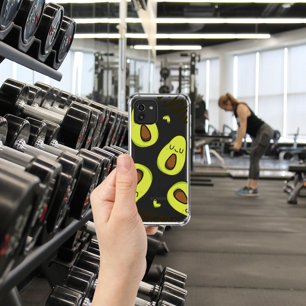 Ben je op zoek naar een uniek telefoonhoesje voor je Samsung Galaxy A03? Dan ben je bij B2C Telecom aan het juiste adres! Speciaal voor jou hebben we dit prachtige Avocado Singing design in onze collectie hoesjes opgenomen. Het design wordt bedrukt op een Stevig Bumper Hoesje en is gemaakt van flexibel rubber. Het hoesje is perfect voor de actieve smartphonegebruiker door de opstaande randen/hoeken. Denk aan mensen die veel sporten, reizen of wandelen en net iets meer zekerheid willen als het op hun geliefde telefoon aankomt. Het design wordt alleen aan de bovenkant van het hoesje bedrukt en de randen blijven transparant. Aan de zijkanten zijn uitsparingen gemaakt waardoor je met gemak alle knoppen en poorten kunt bedienen. Wij adviseren om dit hoesje in combinatie met een screenprotector te gebruiken voor een langere levensduur van je telefoon. Wil je dit hoesje nog iets extra's geven? Voeg dan gratis je naam of een quote toe! Is dit design hoesje toch niet helemaal wat je zocht? Ontwerp dan zelf een hoesje in ons ontwerpprogramma.
