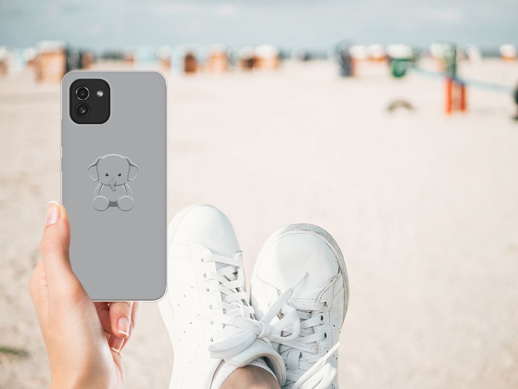 Ben je op zoek naar een uniek telefoonhoesje voor je Samsung Galaxy A03? Dan ben je bij B2C Telecom aan het juiste adres! Speciaal voor jou hebben we dit prachtige Baby Olifant design in onze collectie hoesjes opgenomen. Het design wordt bedrukt op een Telefoonhoesje met Naam en is gemaakt van flexibel rubber. Het design wordt alleen aan de bovenkant van het hoesje bedrukt en de randen blijven transparant. Aan de zijkanten zijn uitsparingen gemaakt waardoor je met gemak alle knoppen en poorten kunt bedienen. Wij adviseren om dit hoesje in combinatie met een screenprotector te gebruiken voor een langere levensduur van je telefoon. Wil je dit design hoesje nog iets extra's geven? Voeg dan gratis je naam of een quote toe! Is dit design hoesje toch niet helemaal wat je zocht? Ontwerp dan zelf een hoesje in ons ontwerpprogramma.