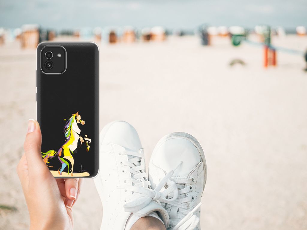 Ben je op zoek naar een uniek telefoonhoesje voor je Samsung Galaxy A03? Dan ben je bij B2C Telecom aan het juiste adres! Speciaal voor jou hebben we dit prachtige Horse Color design in onze collectie hoesjes opgenomen. Het design wordt bedrukt op een Telefoonhoesje met Naam en is gemaakt van flexibel rubber. Het design wordt alleen aan de bovenkant van het hoesje bedrukt en de randen blijven transparant. Aan de zijkanten zijn uitsparingen gemaakt waardoor je met gemak alle knoppen en poorten kunt bedienen. Wij adviseren om dit hoesje in combinatie met een screenprotector te gebruiken voor een langere levensduur van je telefoon. Wil je dit design hoesje nog iets extra's geven? Voeg dan gratis je naam of een quote toe! Is dit design hoesje toch niet helemaal wat je zocht? Ontwerp dan zelf een hoesje in ons ontwerpprogramma.