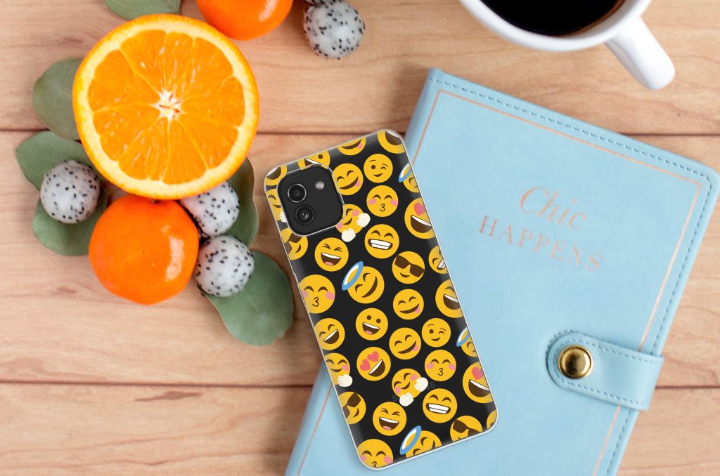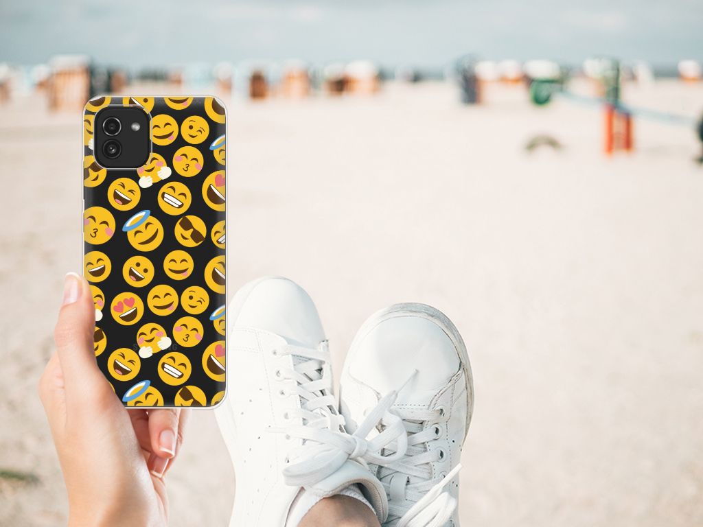 Je gebruikt ze waarschijnlijk dagelijks: emoji’s. Daarom hebben we besloten ze op een design hoesje te zetten. De kleurrijke, vaak gele emoticons maken chatberichten net wat spontaner. Dat hebben we allemaal te danken aan Japan, waar de emoji’s die we zo goed kennen vandaan komen. Ondertussen zijn er meer dan 1800! Deze passen natuurlijk niet allemaal op een Samsung Galaxy A03 TPU bumper, maar we hebben de meeste gebruikte exemplaren erop gezet. Deze tpu case is voorzien van opstaande randen zodat het touchscreen van je telefoon beter is beschermd. Super handig. Het TPU zelf is zeer flexibel en is op maat gemaakt. We gebruiken emoji’s vaak om complete woorden te vervangen. Dit smartphone hoesje zegt dan ook meer dan duizend woorden kunnen. De tpu case wordt alleen aan de bovenzijde bedrukt met emoji’s. De zijkanten van de case worden niet bedrukt en blijven transparant.