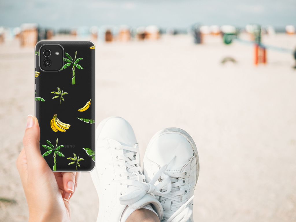 Heb jij al zin om op vakantie te gaan? Dat krijg je hoe dan ook als je één blik werpt op dit vrolijke hoesje voor je Samsung Galaxy A03 met Banana Tree design. Het fleurige tafereel van bananenbomen, bananenbladeren en bananen doet je gedachten afdwalen naar paradijselijke bountystranden met azuurblauwe zee en helderwitte zandpartijen. Kortom: dit hoesje is goed voor je humeur. Naast het luchtige design zijn daar nog meer redenen voor, want dankzij de stevige materialen weet je zeker dat dit TPU Case je telefoon altijd optimaal beschermt Dit hoesje wordt alleen aan de bovenkant bedrukt en is zeer flexibel. De randen van het hoesje blijven transparant. Met dit hoesje breng je jezelf in zomerse sferen en gun je jezelf een krasvrije telefoon.
