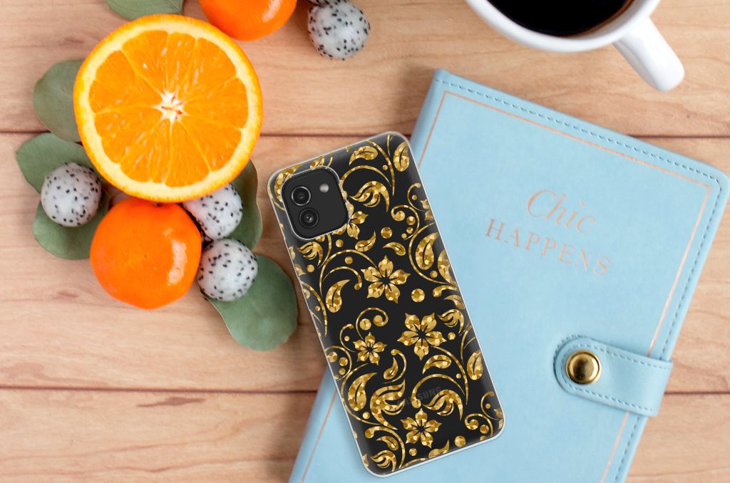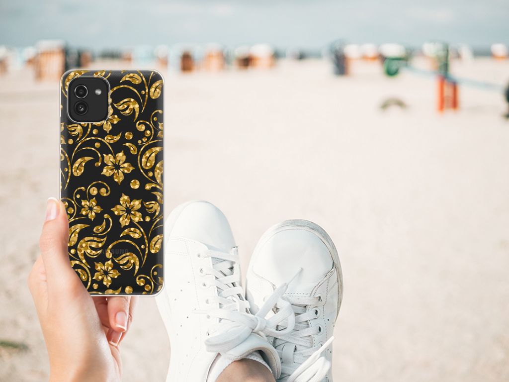 Ben je op zoek naar een uniek telefoonhoesje voor je Samsung Galaxy A03? Dan ben je bij B2C Telecom aan het juiste adres! Speciaal voor jou hebben we dit prachtige Gouden Bloemen design in onze collectie hoesjes opgenomen. Het design wordt bedrukt op een TPU Case en is gemaakt van flexibel rubber. Het design wordt alleen aan de bovenkant van het hoesje bedrukt en de randen blijven transparant. Aan de zijkanten zijn uitsparingen gemaakt waardoor je met gemak alle knoppen en poorten kunt bedienen. Wij adviseren om dit hoesje in combinatie met een screenprotector te gebruiken voor een langere levensduur van je telefoon. Wil je dit design hoesje nog iets extra's geven? Voeg dan gratis je naam of een quote toe! Is dit design hoesje toch niet helemaal wat je zocht? Ontwerp dan zelf een hoesje in ons ontwerpprogramma.