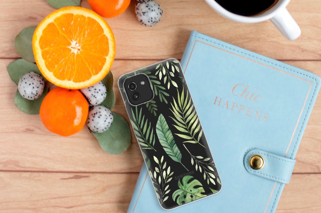 Je voelt je verbonden met de natuur als je kiest voor deze Samsung Galaxy A03 TPU Case met print Leaves. De print bestaat uit verschillende groene bladeren en dit zorgt voor een fraai decoratief geheel. Met dit patroon van groene bladeren creëer je een frisse uitstraling voor jouw smartphone. Jij doet er verstandig aan om je telefoon te beschermen met dit design hoesje met groene bladeren, die staan op een tpu case. Dit tpu hoesje kenmerkt zich onder meer door de opstaande randen aan de voorzijde, waardoor bij een val van de smartphone het scherm de grond niet raakt. Voel jij jezelf gezond met een beeld van groene bladeren, dan is deze tpu case met print een uitstekende optie. Het beschermt jouw telefoon aan de achterkant en zijkanten zeer goed. Het TPU is zeer flexibel en onbreekbaar. De zijkanten van de case blijven transparant. Kijk ook eens naar onze andere hoesjes met bladeren of misschien maak je zelf wel gewoon liefst je eigen hoesje met eigen foto’s van bladeren.