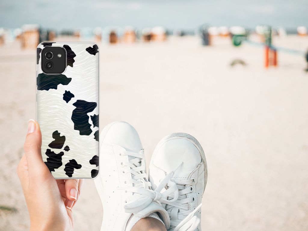 De vlekken op de huid van een koe hebben een camouflage functie. Met deze Samsung Galaxy A03 TPU Hoesje met Koeienvlekken hoef je je geen zorgen te maken dat je smartphone schade oploopt. De koeienvlekken zetten we op een tpu case op het moment dat jij je bestelling plaatst. Hierdoor krijgt jouw telefoon een print van koeienvlekken van zeer hoge kwaliteit. Ook omdat we het bedrukken van deze case geheel zelf doen. Jouw telefoon is vooral aan de achterkant en zijkanten goed beschermd. De print van koeienvlekken komt op de bovenkant van het hoesje te staan, de randen blijven doorzichtig. Roofdieren zijn niet geïnteresseerd in koeien dankzij de vlekken op hun huid. Deze beschermende werking heeft ook jouw hoesje met koeienprint.