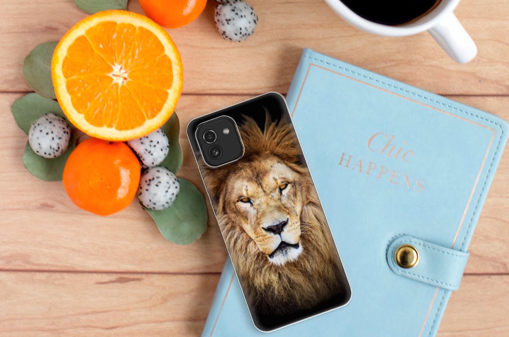 We hebben een grote verzameling katten op onze hoesjes staan, waarvan de leeuw na de tijger de grootste is. De Leeuw op het design hoesje ziet er door de indrukwekkende manen bijzonder krachtig uit. De kracht straalt ook af op de Samsung Galaxy A03 TPU Hoesje, die jouw smartphone vooral aan de achterkant en zijkanten perfect beschermt. Rond het begin van de jaartelling had de leeuw een veel grotere verspreiding dan nu. De afgelopen 20 jaar is het aantal leeuwen met 30 tot 50% afgenomen. Zonde natuurlijk. Dit design hoesje met leeuw zal in elk geval nooit verloren gaan. De print op deze case is zeer duurzaam. Jouw smartphone past perfect in de houder van TPU, een zeer flexibel en onbreekbaar soort materiaal. De leeuw komt niet terug op de zijkanten van het hoesje. Die blijven namelijk doorzichtig.