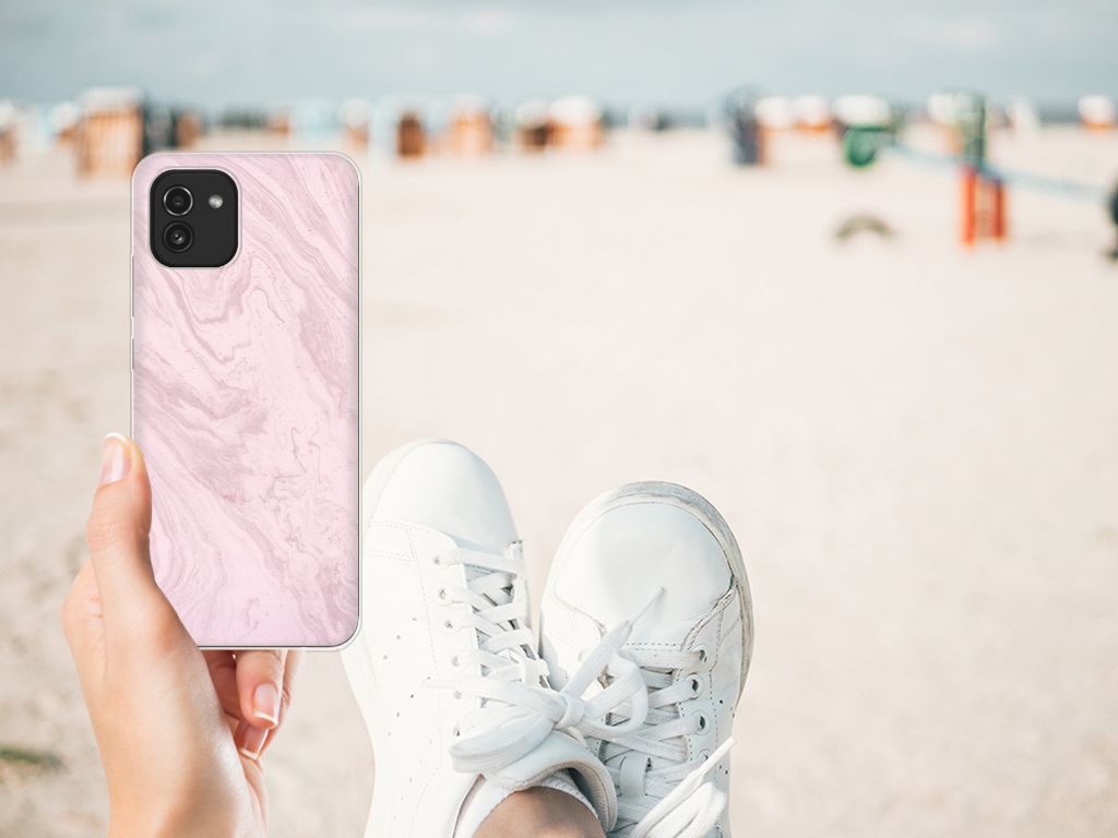 Dit design hoesje met Marble Pink is de ultieme bescherming voor jouw kostbare telefoon. Marmer is een zeer gewild bouwmateriaal, onder meer vanwege zijn prachtige lichtval en vastheid. Wij weten dat dit hoesje met roze marmer ook zeer gewild is. Dit hele mooie Samsung Galaxy A03 TPU Siliconen Hoesje is een fantastische beloning voor jou en je smartphone. Naast het roze marmer zijn er nog diverse andere soorten in verschillende kleuren. Deze tpu case met marmer in roze wordt aan de achterzijde bedrukt. De case beschikt over opstaande randen en is gemaakt van onbreekbaar materiaal. De randen van de case in roze marmer blijven transparant. Onze designer heeft zich uitgeleefd met dit mooie hoesje. Het resultaat zie je terug in deze tpu case met roze marmer, dat een hele goede bescherming is voor jouw smartphone. Marmer kent verschillende kleuren, variërend van grijs, tot roze en wit. Des te mooi dat wij voor variatie hebben gekozen door een hoesje met roze marmer aan de bieden.