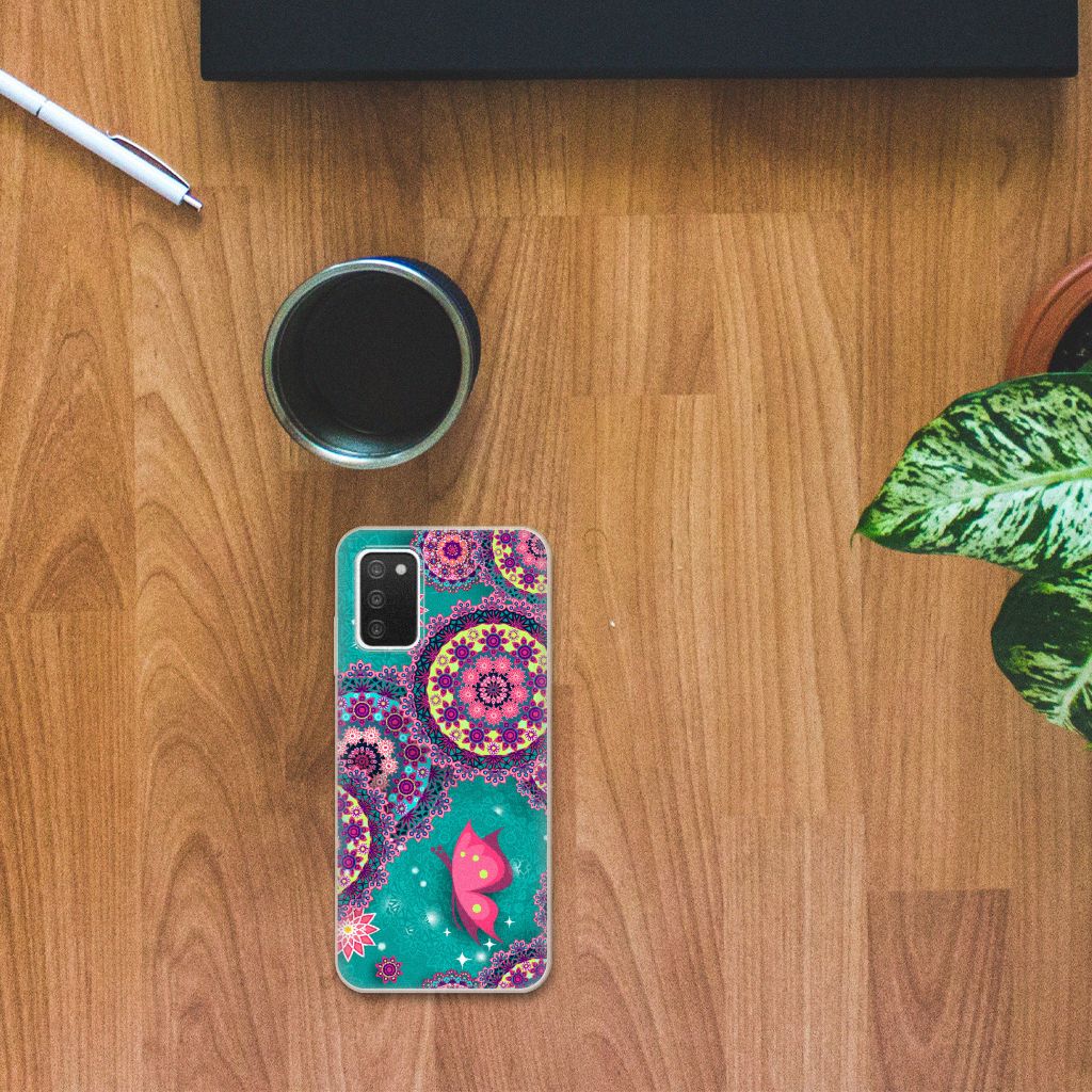 Deze opvallende Samsung Galaxy A03S Hoesje maken met Cirkels en Vlinders is een ware eyecatcher. De meeste vlinders hebben een onopvallende vleugelkleur en dat kun je van de soort op dit hoesje ook zeker wel zeggen. Wij kunnen deze opvallende vlinders en cirkels op een zeer handige tpu case zetten. Deze hoesjes zijn gewild omwille hun flexibiliteit. Met onze geavanceerde printer zetten we de print van opvallende vlinders en cirkels op de achterkant van het hoesje. De case met vlinders en cirkels blijft aan de zijkanten doorzichtig, zodat je maximaal het design van je smartphone behoudt. Verder is je telefoon natuurlijk goed beschermd met deze tpu case met print van blauwe vlinders. De bovenkant wordt bedrukt, de zijkanten niet. Met een screenprotector bescherm je ook het scherm maximaal.