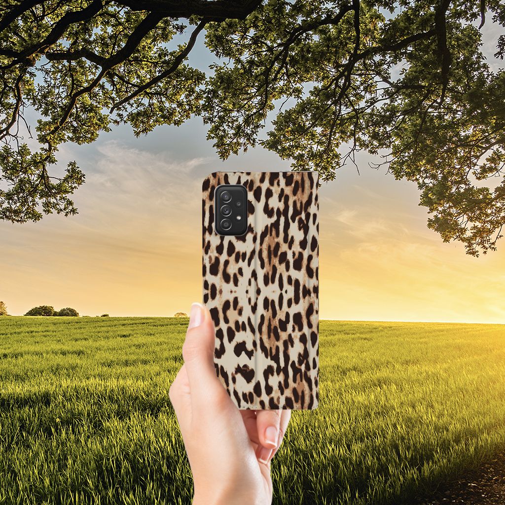 Het luipaard wordt ook wel een panter genoemd en is een sluwe kat. De bruingele vacht met een patroon van rozetachtige vlekken geeft een goede schutkleur. Dit zie je ook op een fraaie manier afgebeeld op dit super stoere hoesje met luipaardprint. Mensen die indruk willen maken kopen deze stand case met Leopard print. Een Samsung Galaxy A03s Hoesje maken is van alle markten thuis. Het is praktisch – vanwege onder meer het opbergvakje en de magnetische sluiting aan de binnenzijde – maar beschermt jouw smartphone tevens op een geweldige manier. Het luipaard is sterk en behendig en wellicht typeert jou dat ook wel. Dan past dit hoesje met luipaard perfect bij jou. De houder van TPU aan de binnenzijde is minstens zo sterk als het luipaard. Jouw telefoon is perfect beschermd en de case heeft tevens een standaard.