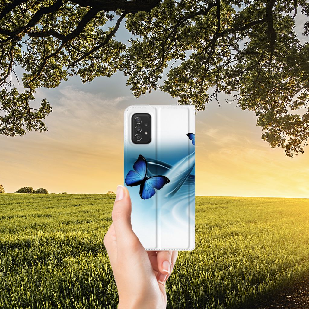 Deze vrolijke Samsung Galaxy A03s Hoesje maken met blauwe vlinders is een ware eyecatcher. De meeste vlinders hebben een onopvallende vleugelkleur, andere soorten hebben juist heldere en felle kleuren. Wij kunnen deze blauwe vlinders op een zeer handige stand case zetten. Deze hoesjes zijn het meest gewild. Met onze geavanceerde printer zetten we de afbeelding van vlinders op alle zijden van het hoesje. De case met vlinders heeft aan de binnenkant een houder waarin je jouw creditcard of ander pasje kwijt kunt. De case heeft bovendien een handige standaard. Verder is je telefoon natuurlijk maximaal beschermd met deze stand case met print van blauwe vlinders. De houder aan de binnenzijde van het design hoesje met vlinder print is van TPU.